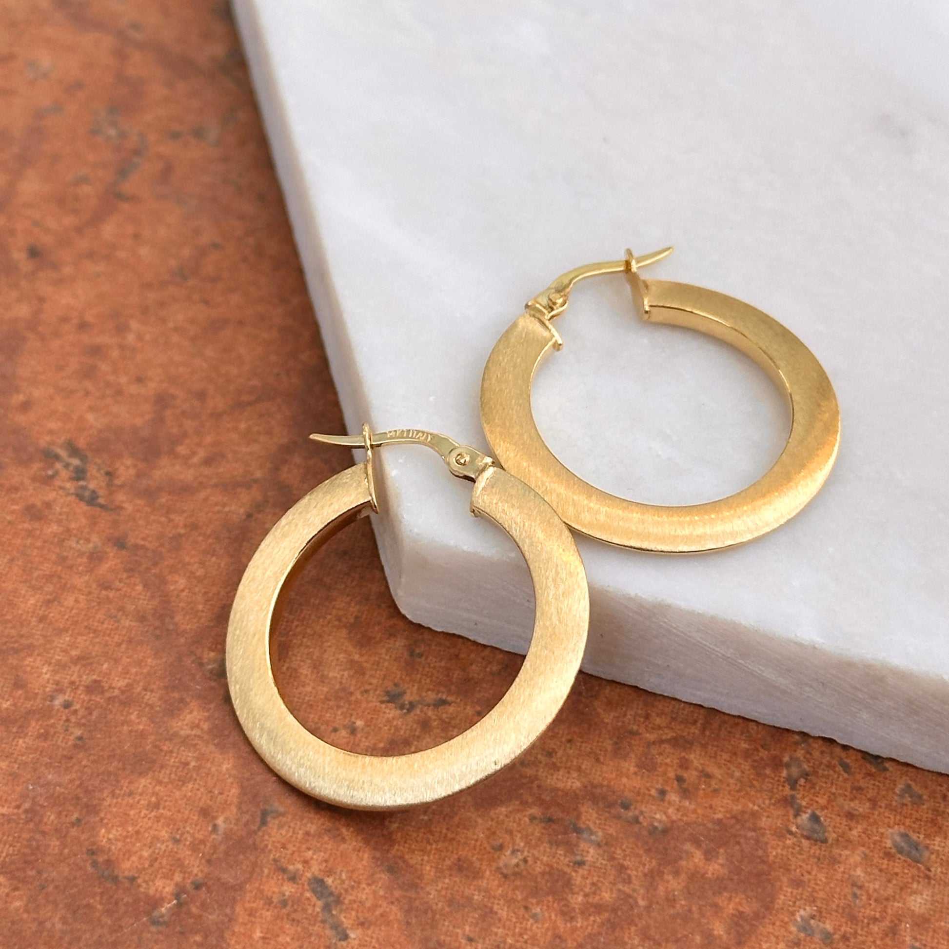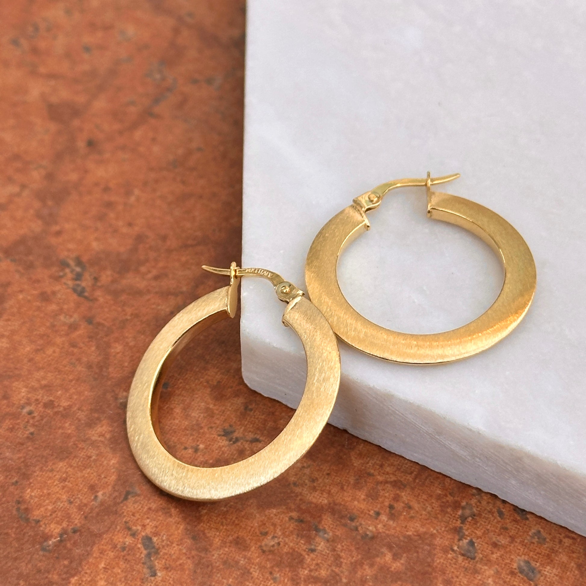 14KT Yellow Gold Satin Matte 31mm Wide Circle Hoop Earrings