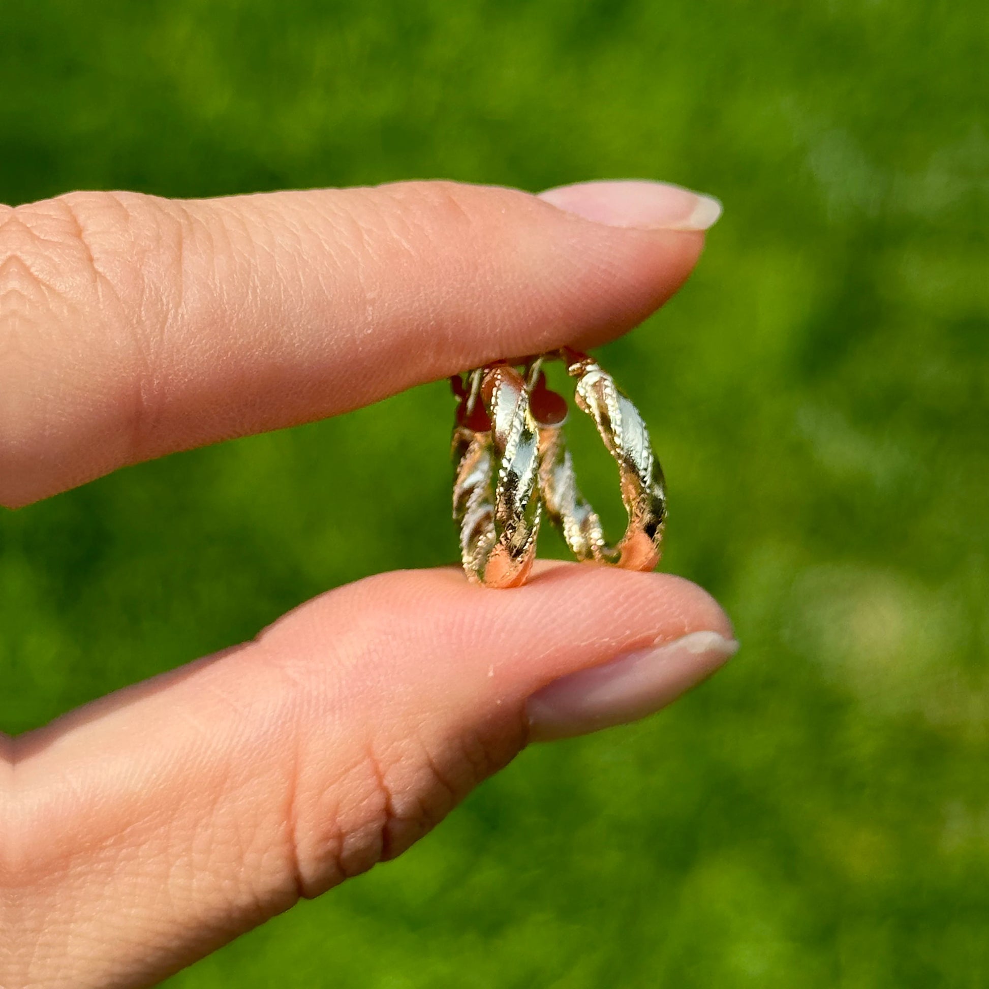 14KT Yellow Gold Twisted + Textured Design Tube Hoop Earrings