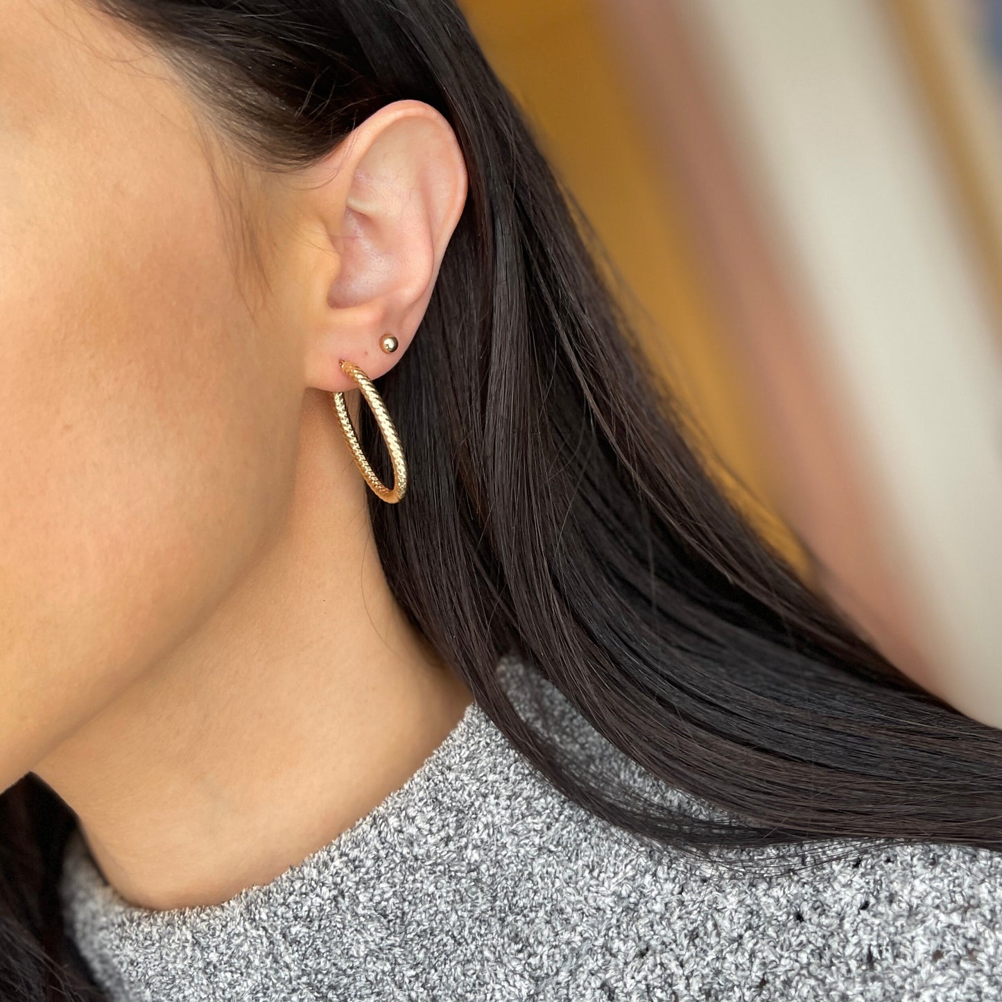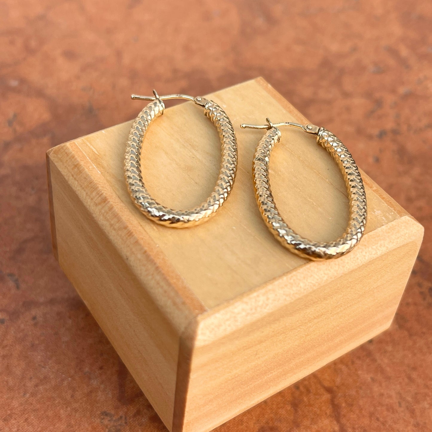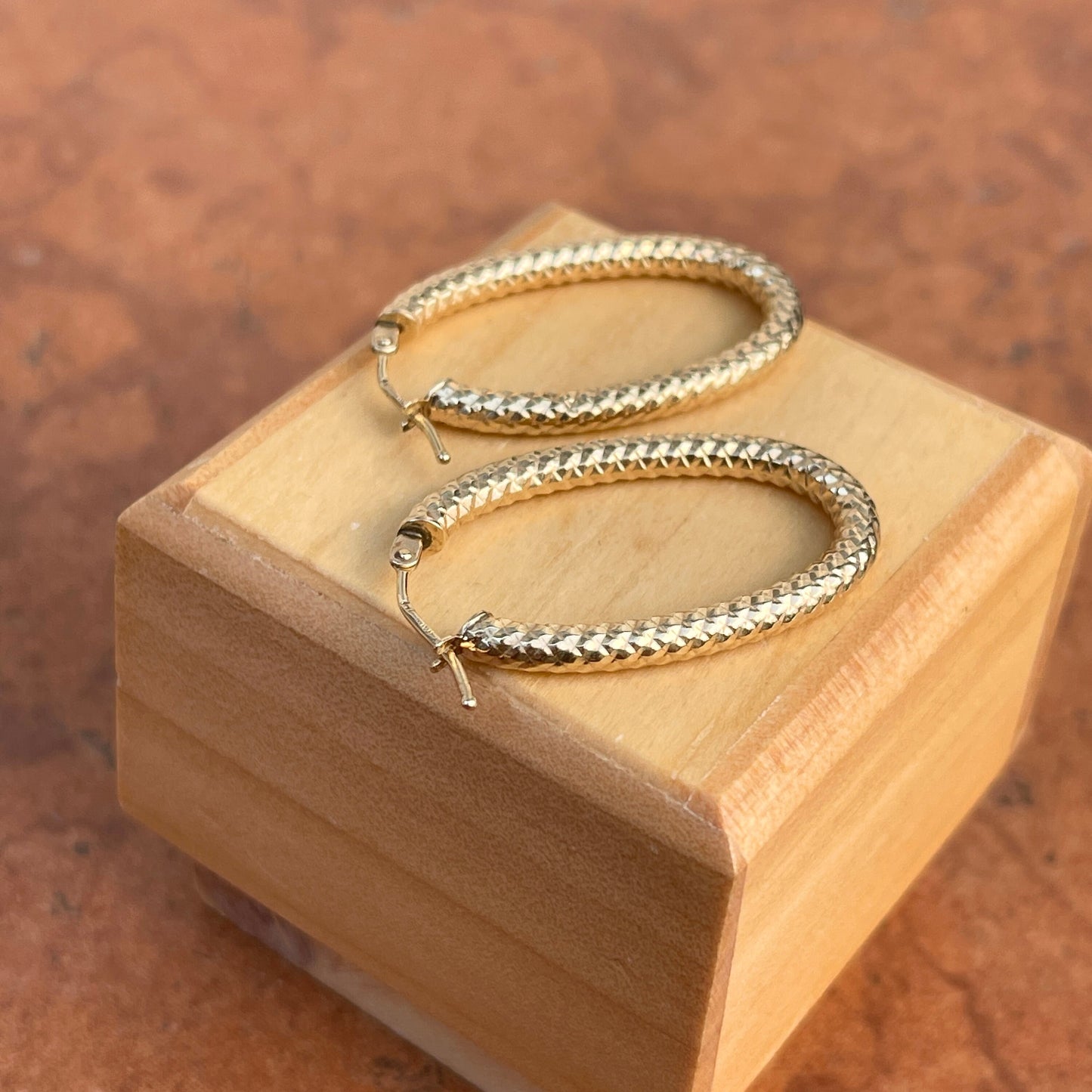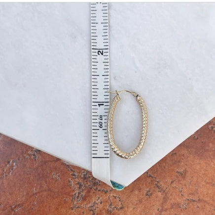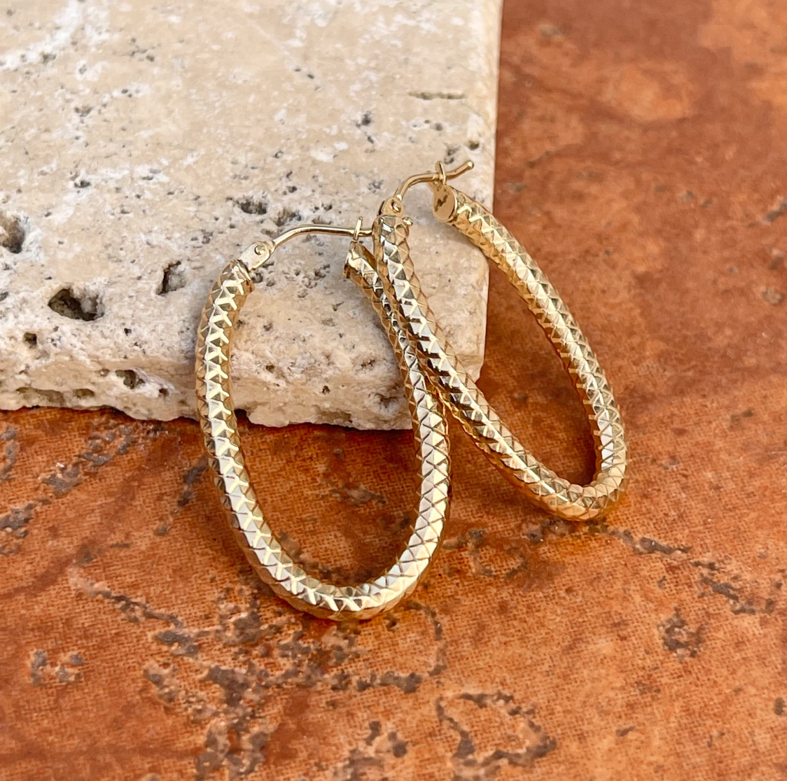 14KT Yellow Gold Diamond-Cut + Textured Tube Oval Hoop Earrings