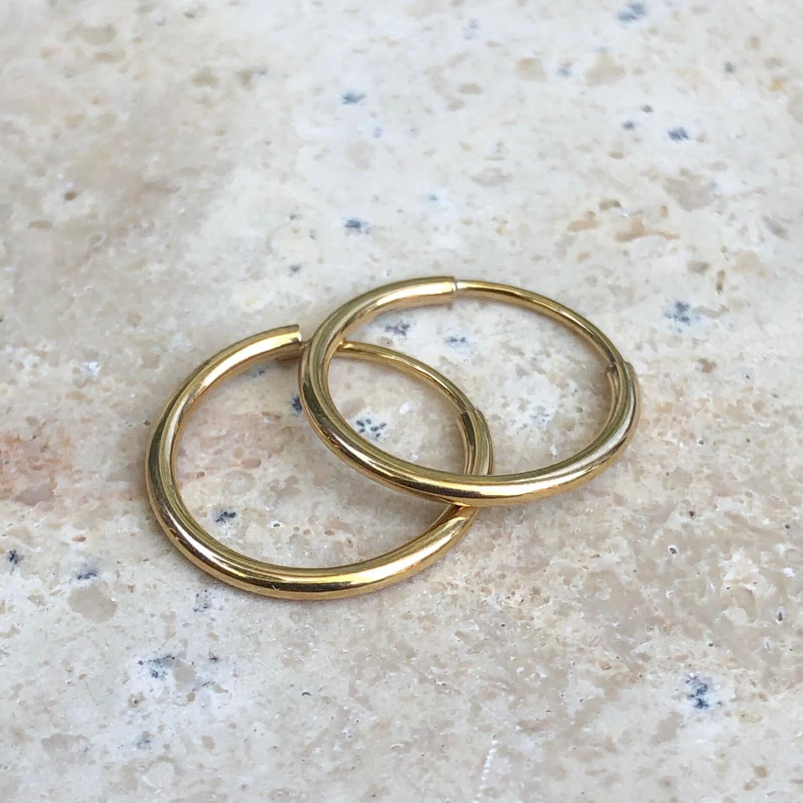 14KT Yellow Gold Shiny Thin Endless Hoop Earrings 13mm