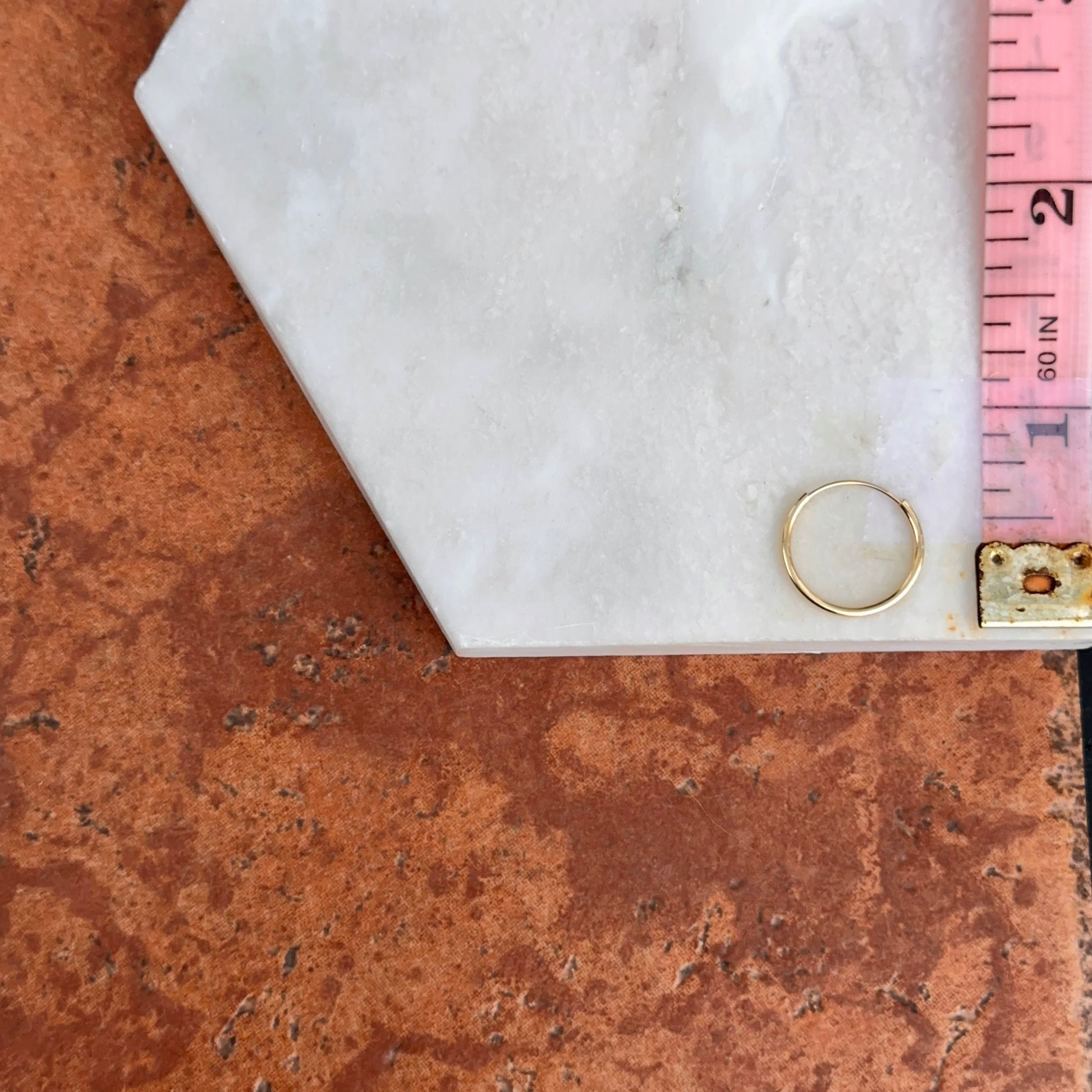 14KT Yellow Gold Shiny Thin Tube Round Endless Hoop Earrings 15MM