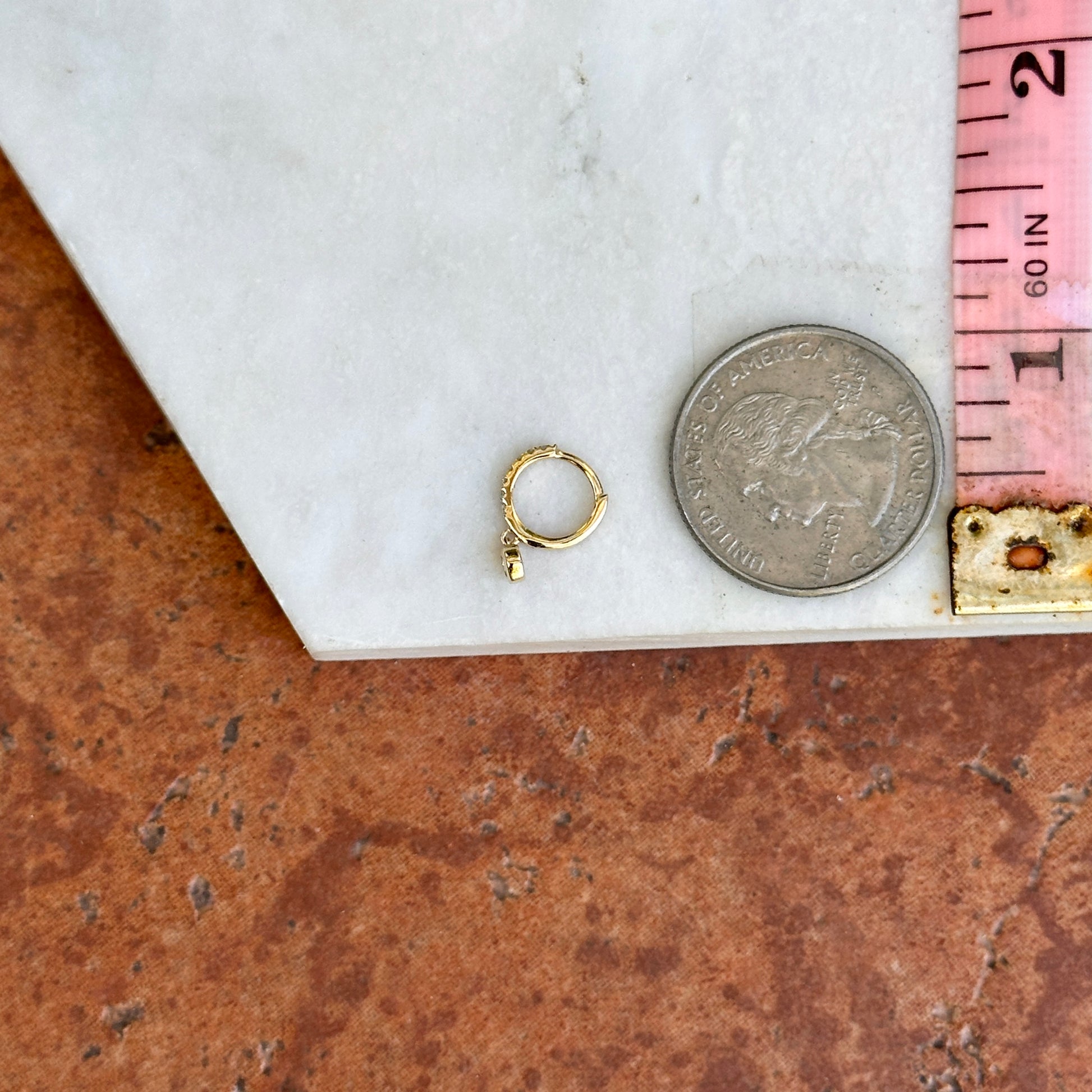 14KT Yellow Gold Small Round Diamond Huggie Hoop Dangle Earrings