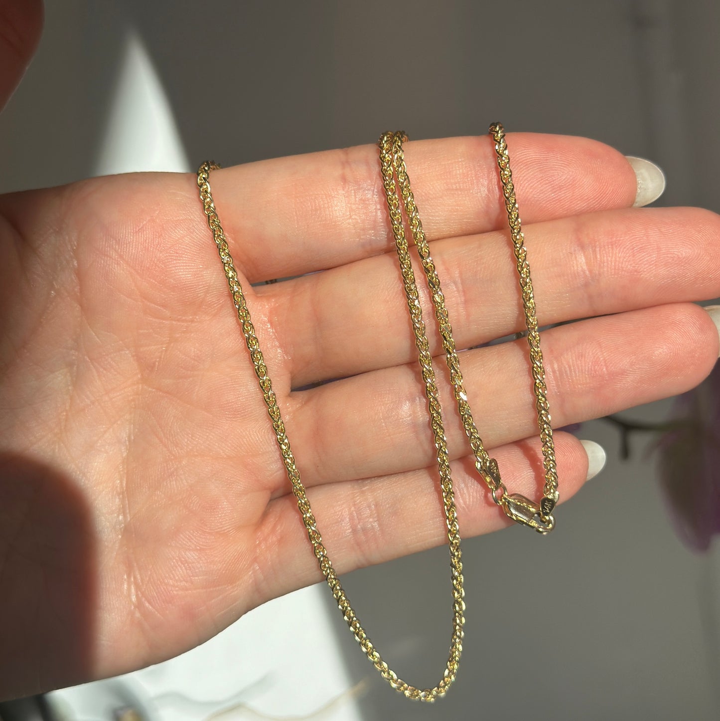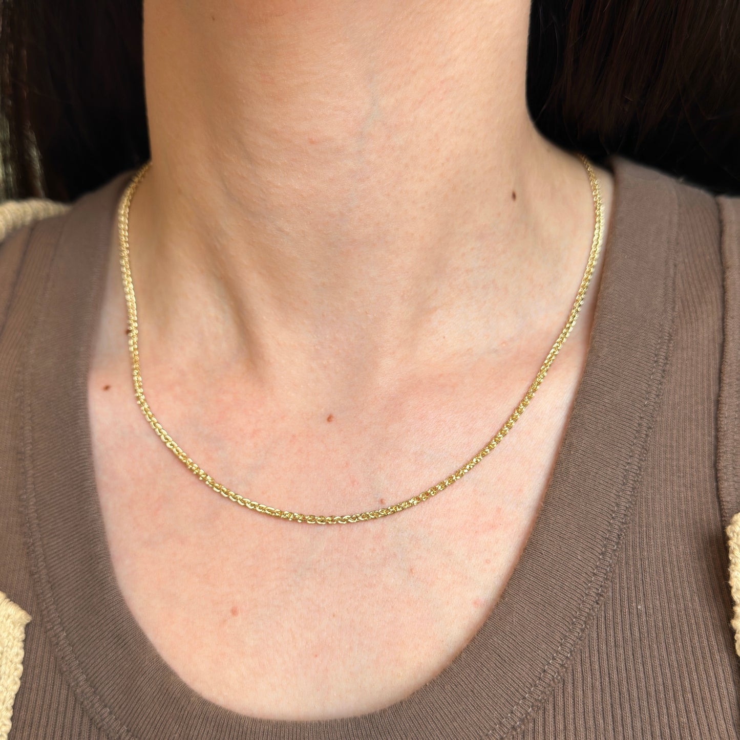 14KT yellow gold solid, diamond-cut, Spiga chain necklace.