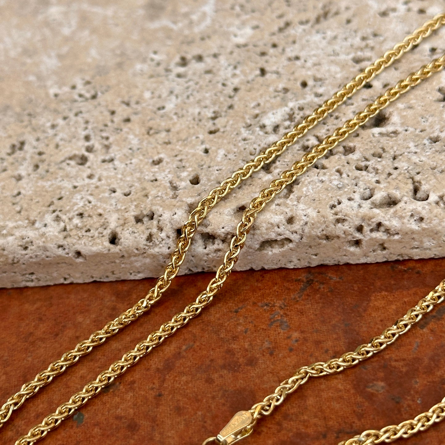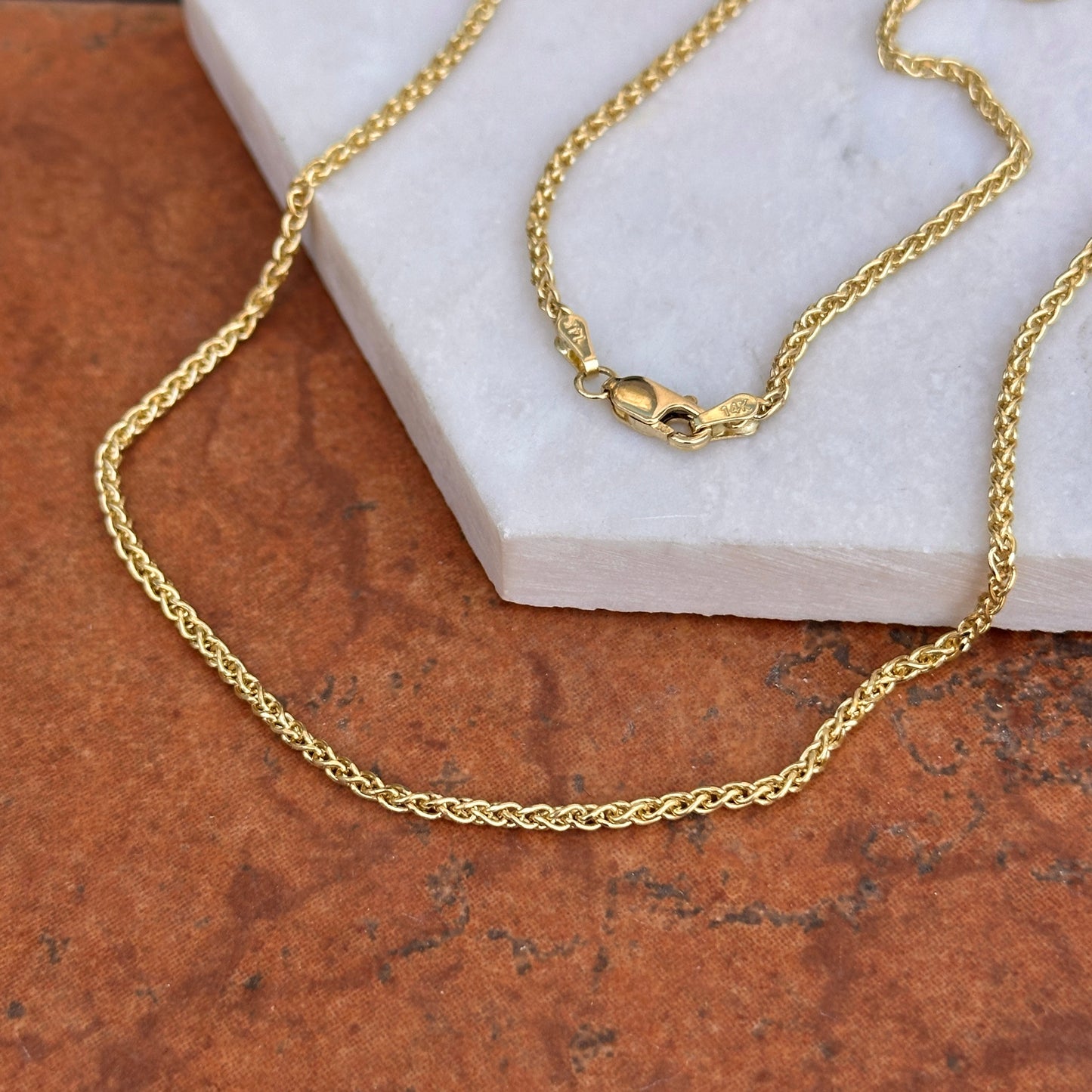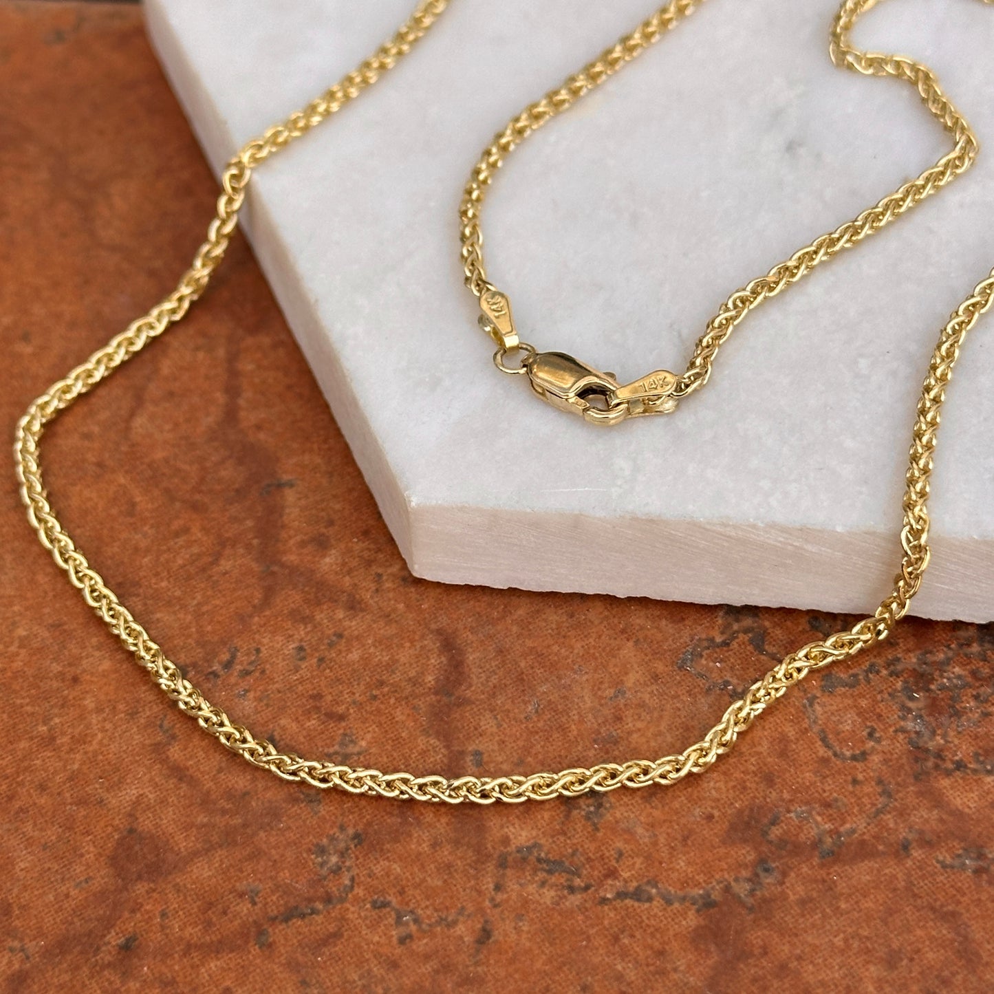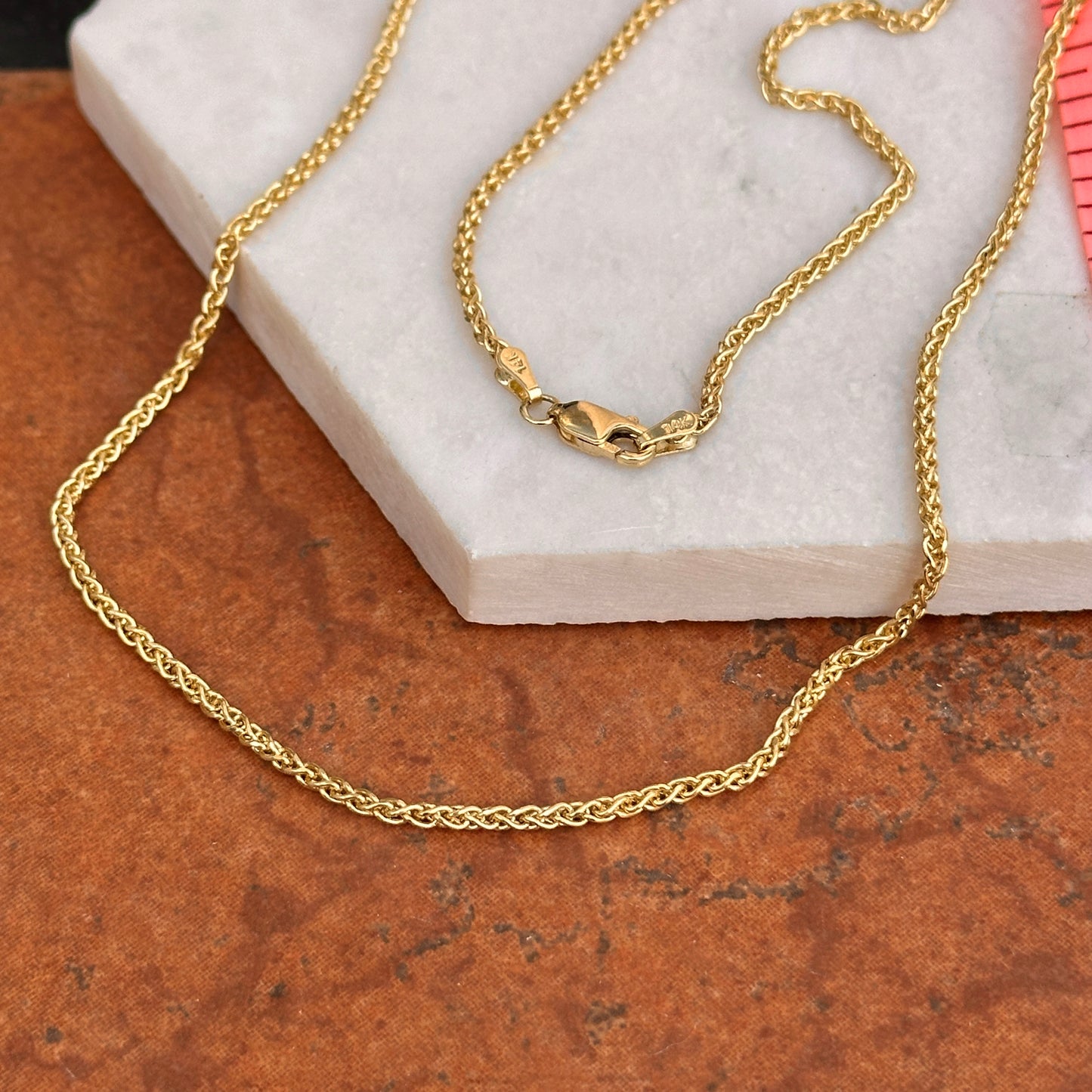 14KT Yellow Gold Solid 2.1mm Spiga Chain Necklace