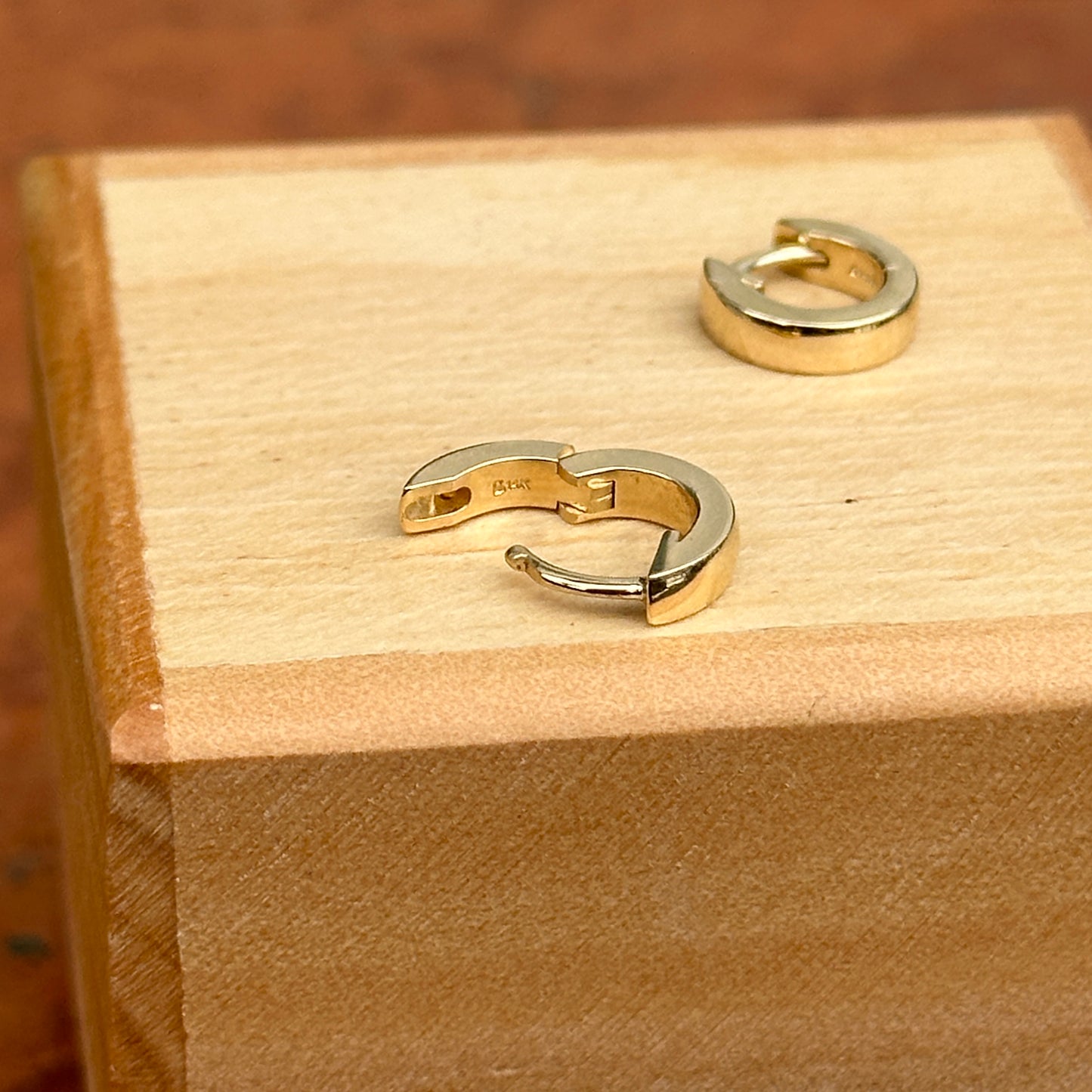 14KT Yellow Gold Solid Hinged Huggie Hoop Earrings 9.5mm