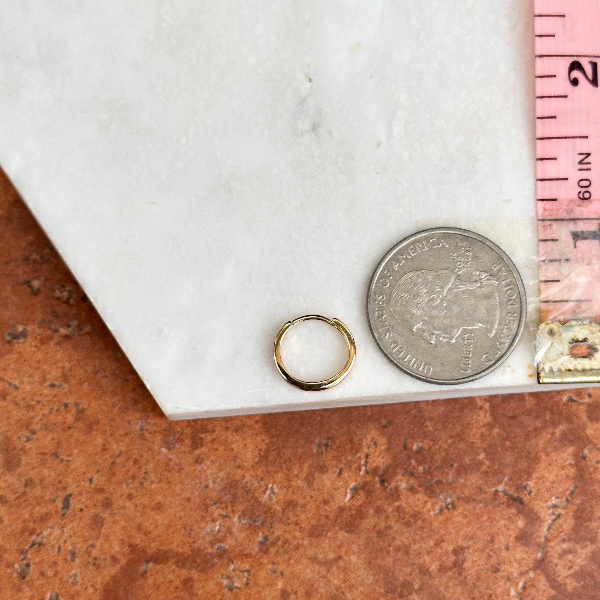 14KT Yellow Gold Solid Navy Blue Enamel Huggie Hoop Earrings Small