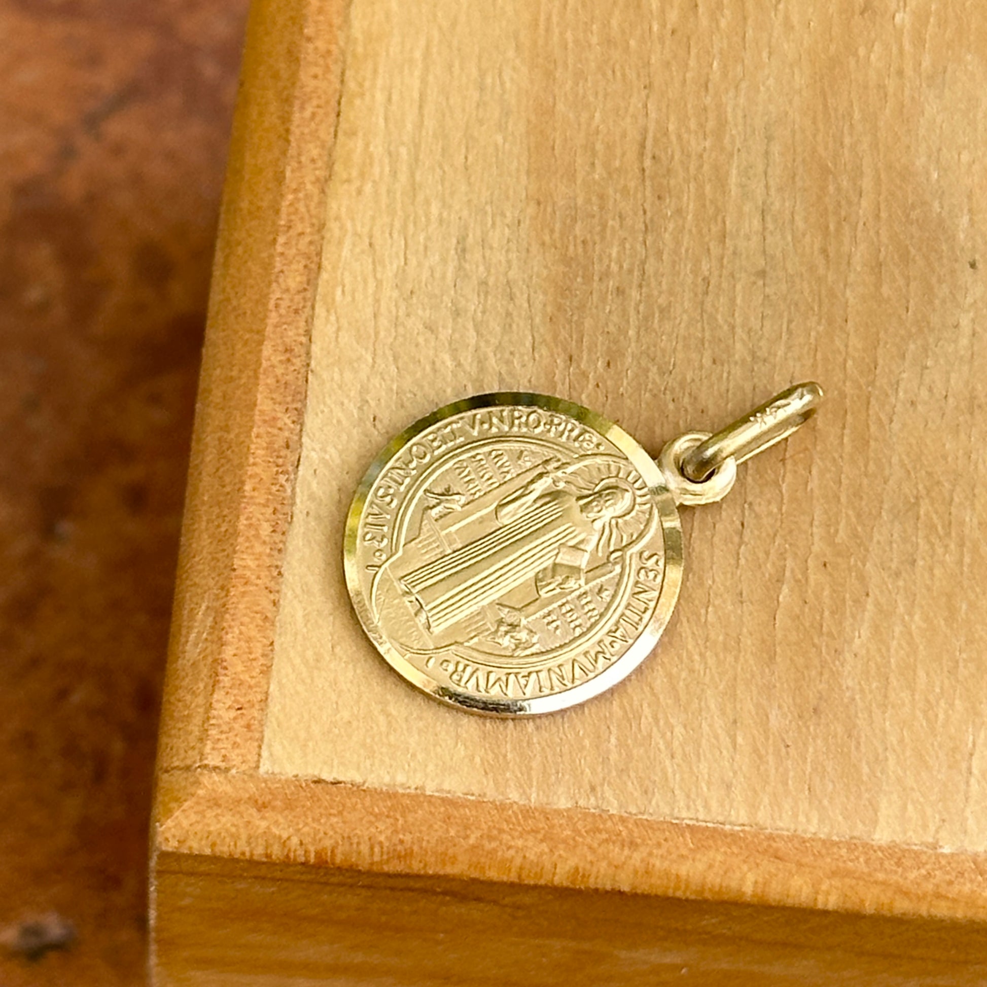 14KT Yellow Gold St Benedict Patron Saint Round Medal Pendant Charm 15mm