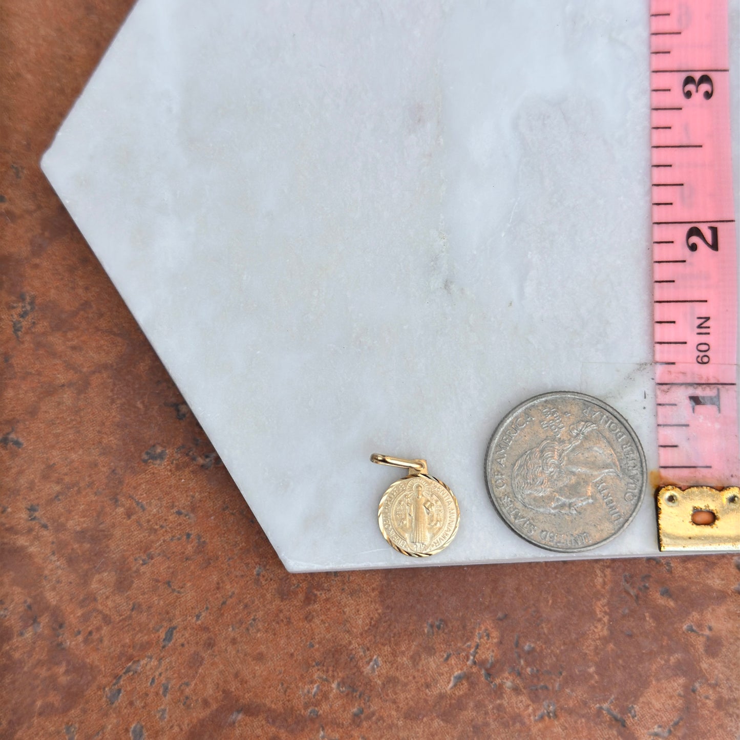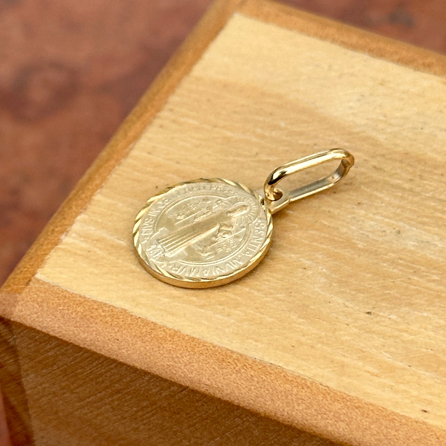 14KT Yellow Gold St Benedict Patron Saint Round Medal Pendant Charm Solid 13mm