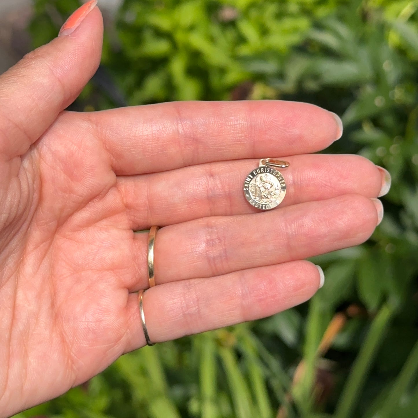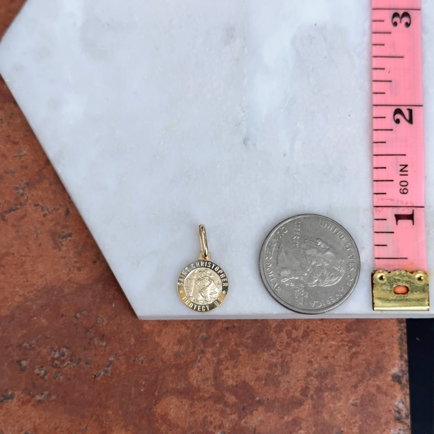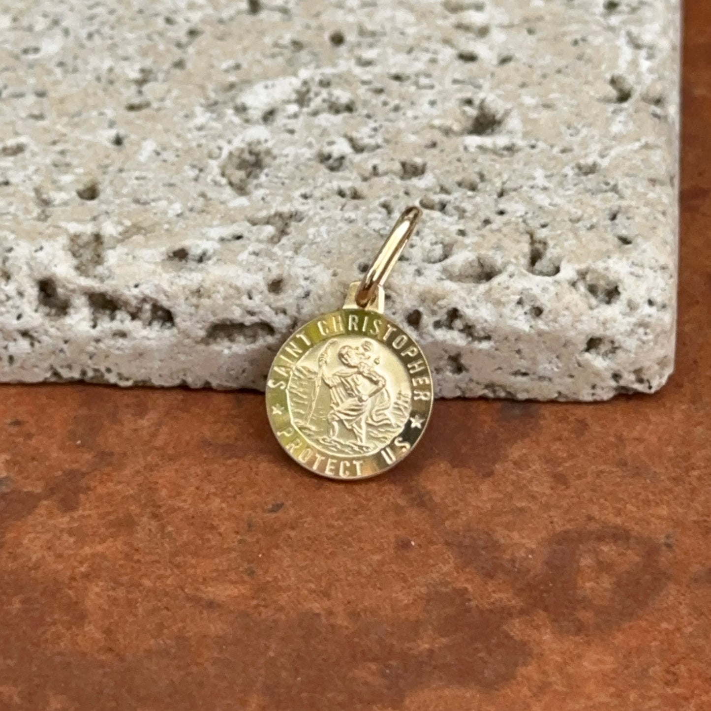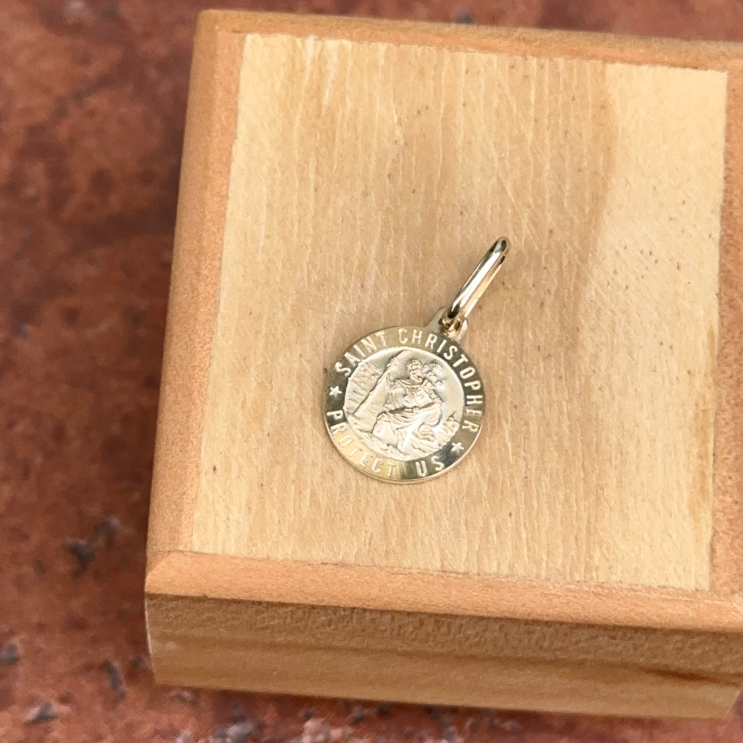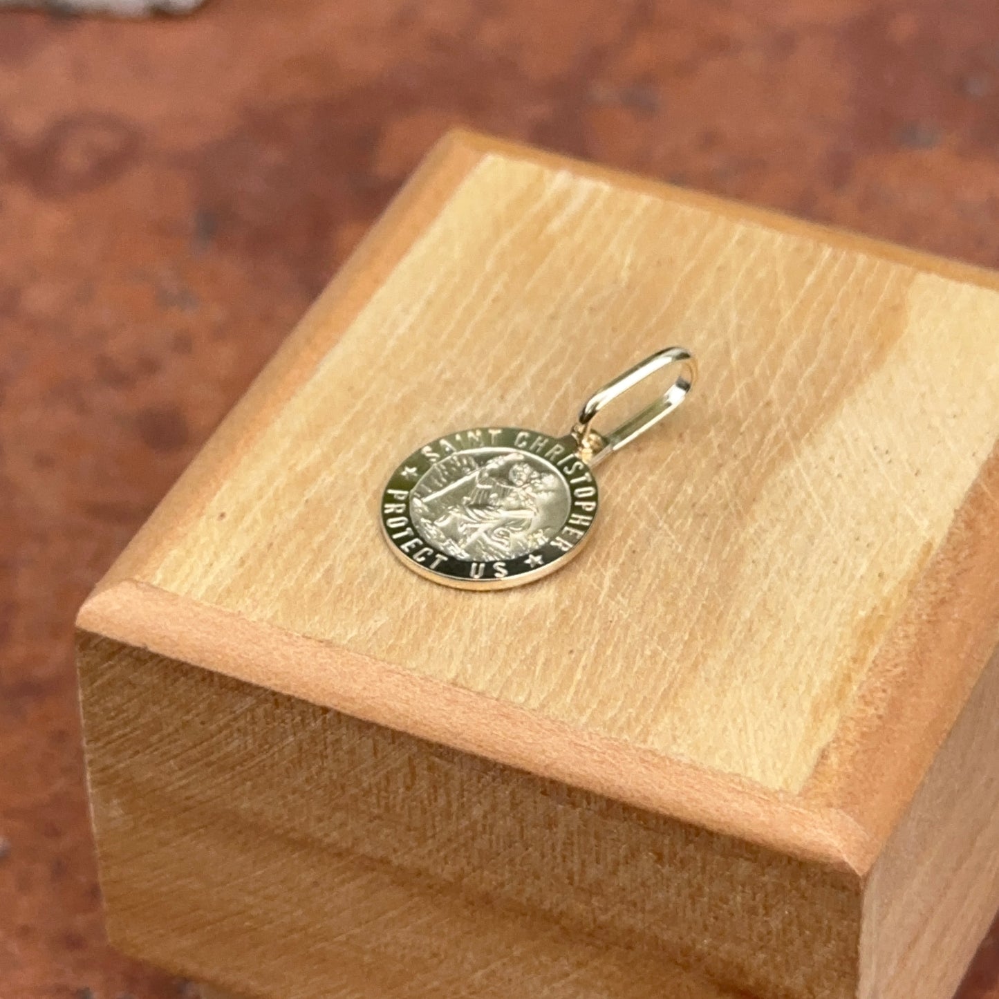 14KT Yellow Gold St Christopher Round Medal Pendant Charm 13mm