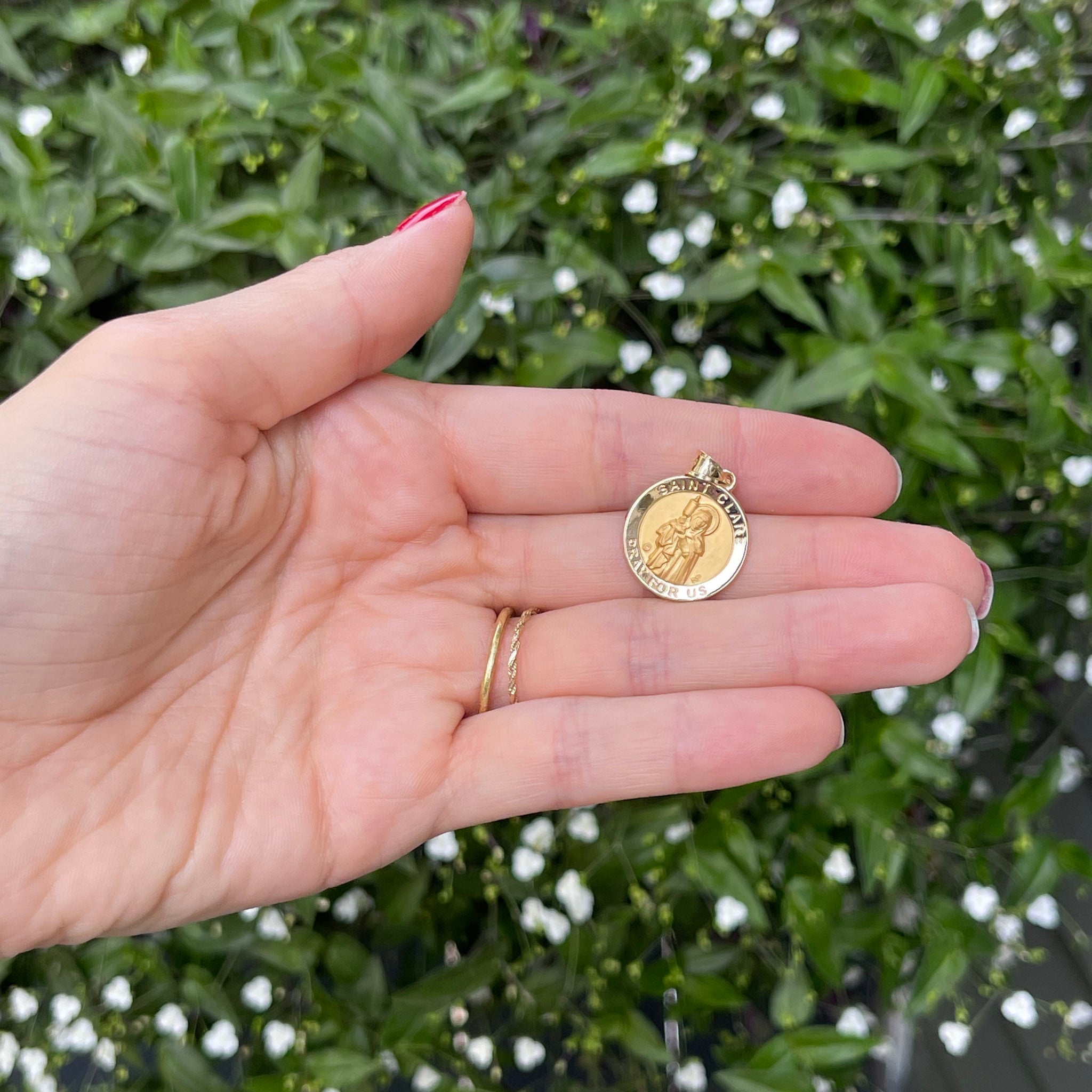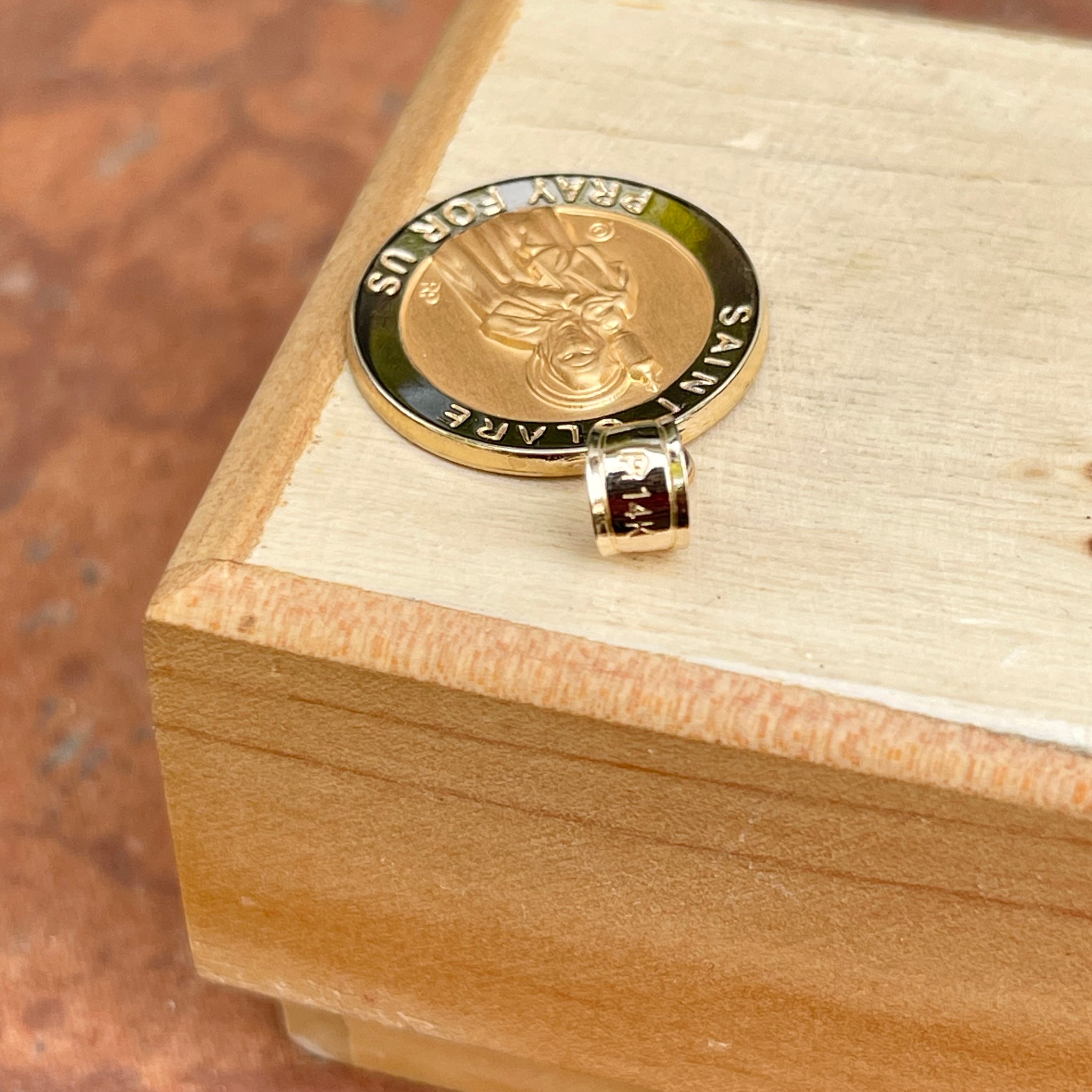 14KT Yellow Gold St Clare Round Medal Pendant Charm 19mm