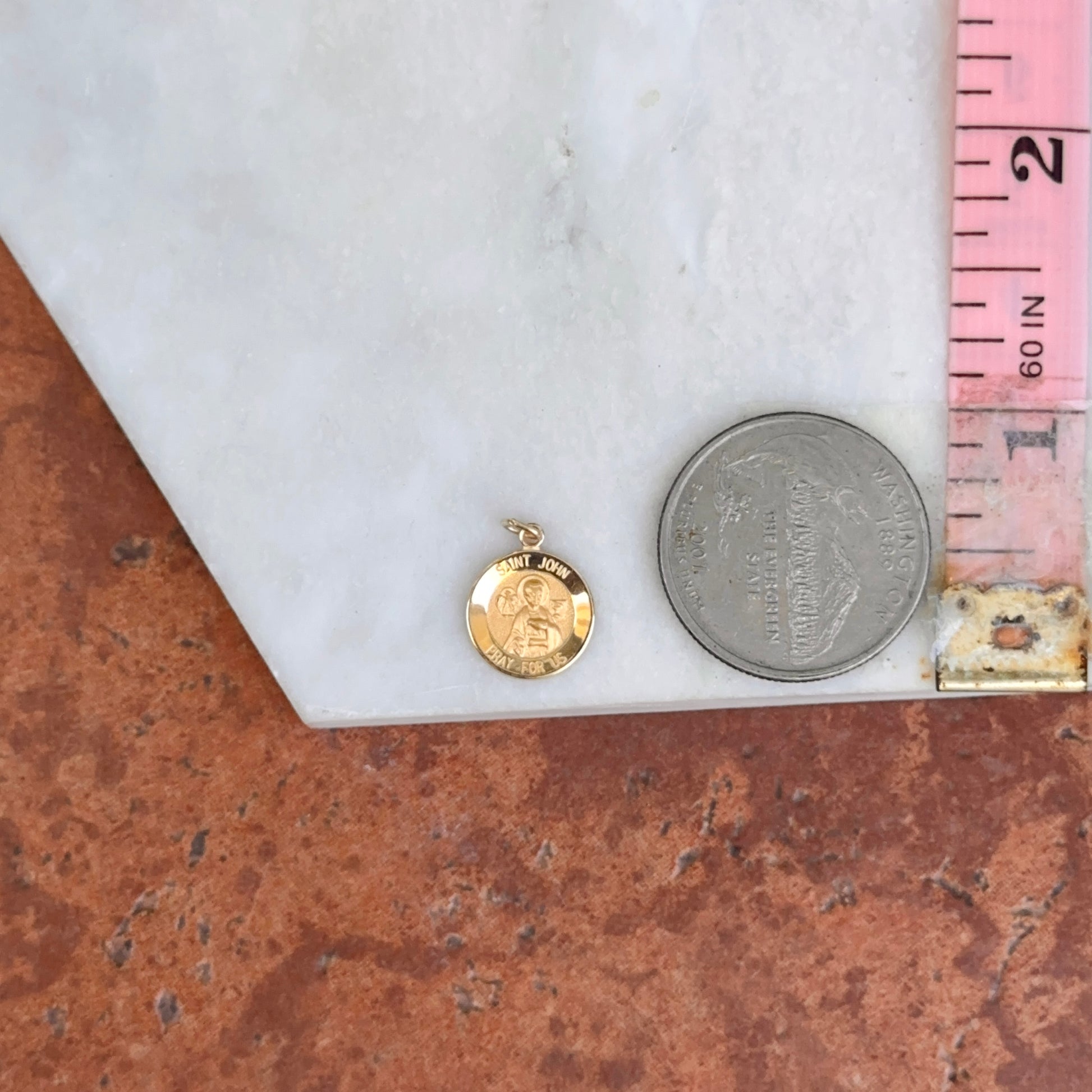 14KT Yellow Gold St John the Baptist Medal Round Pendant Charm 12mm
