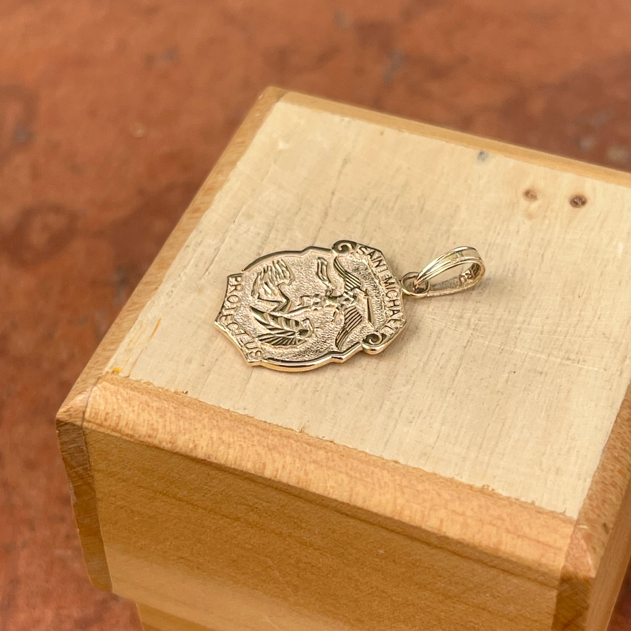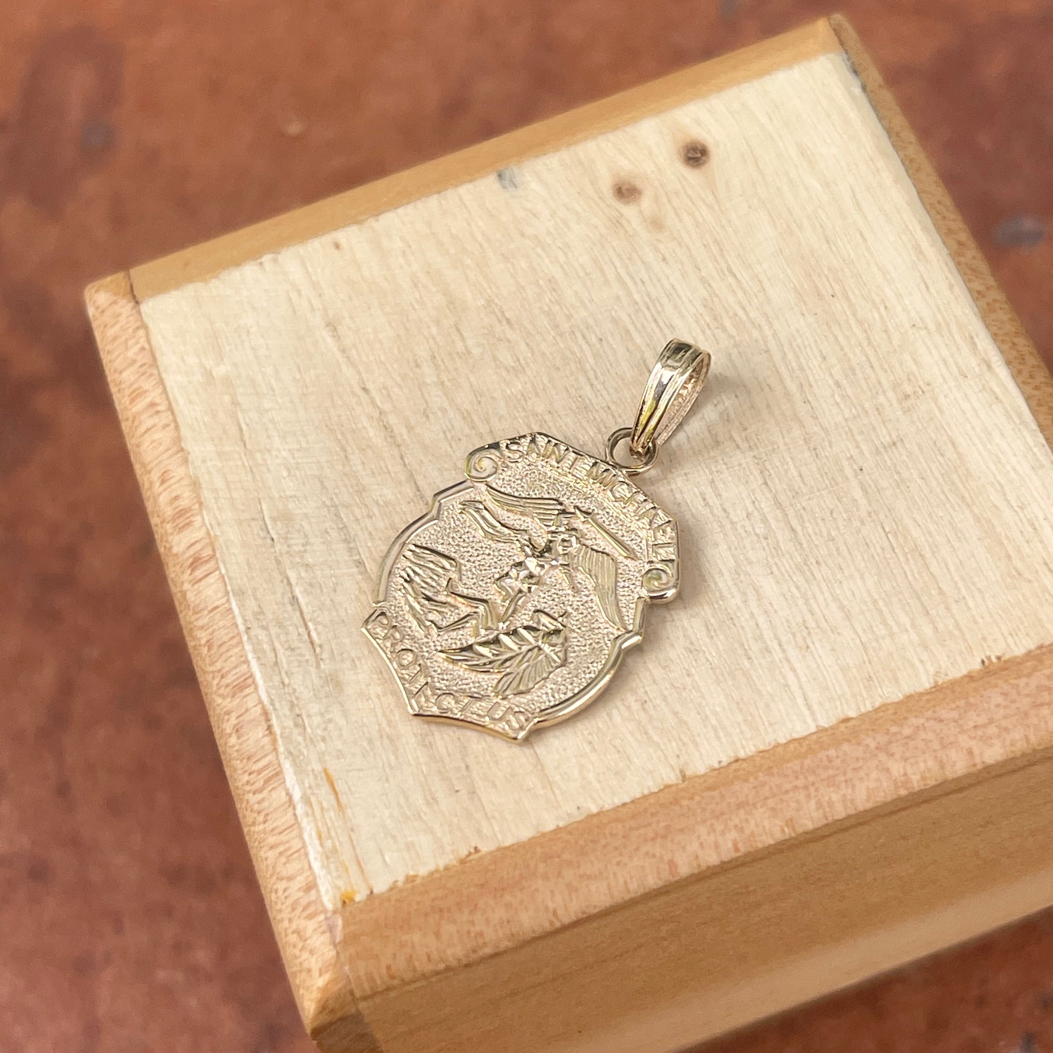 14KT Yellow Gold St Michael Badge Pendant Charm