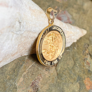 14KT Yellow Gold Saint Michael Round Hollow Medal Pendant