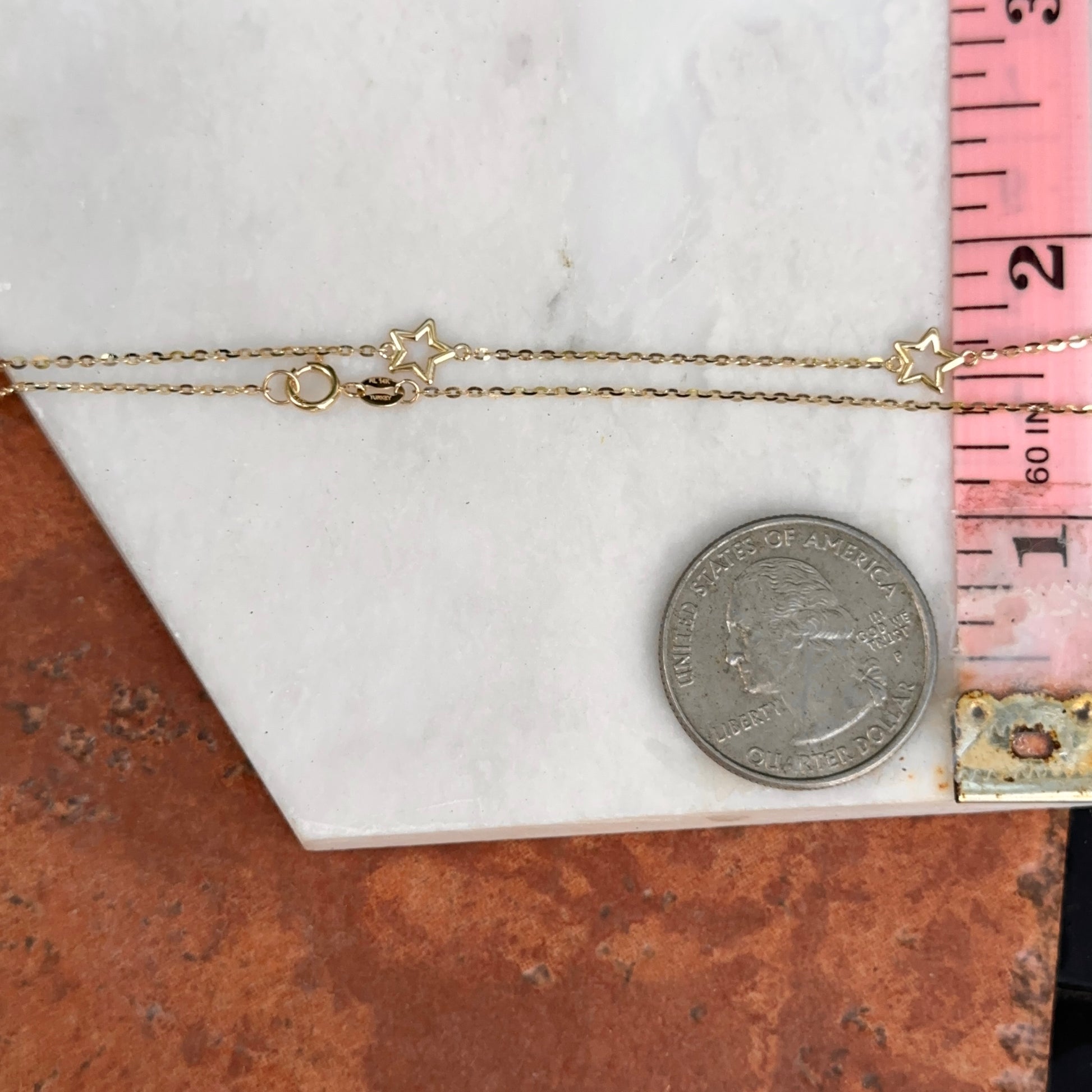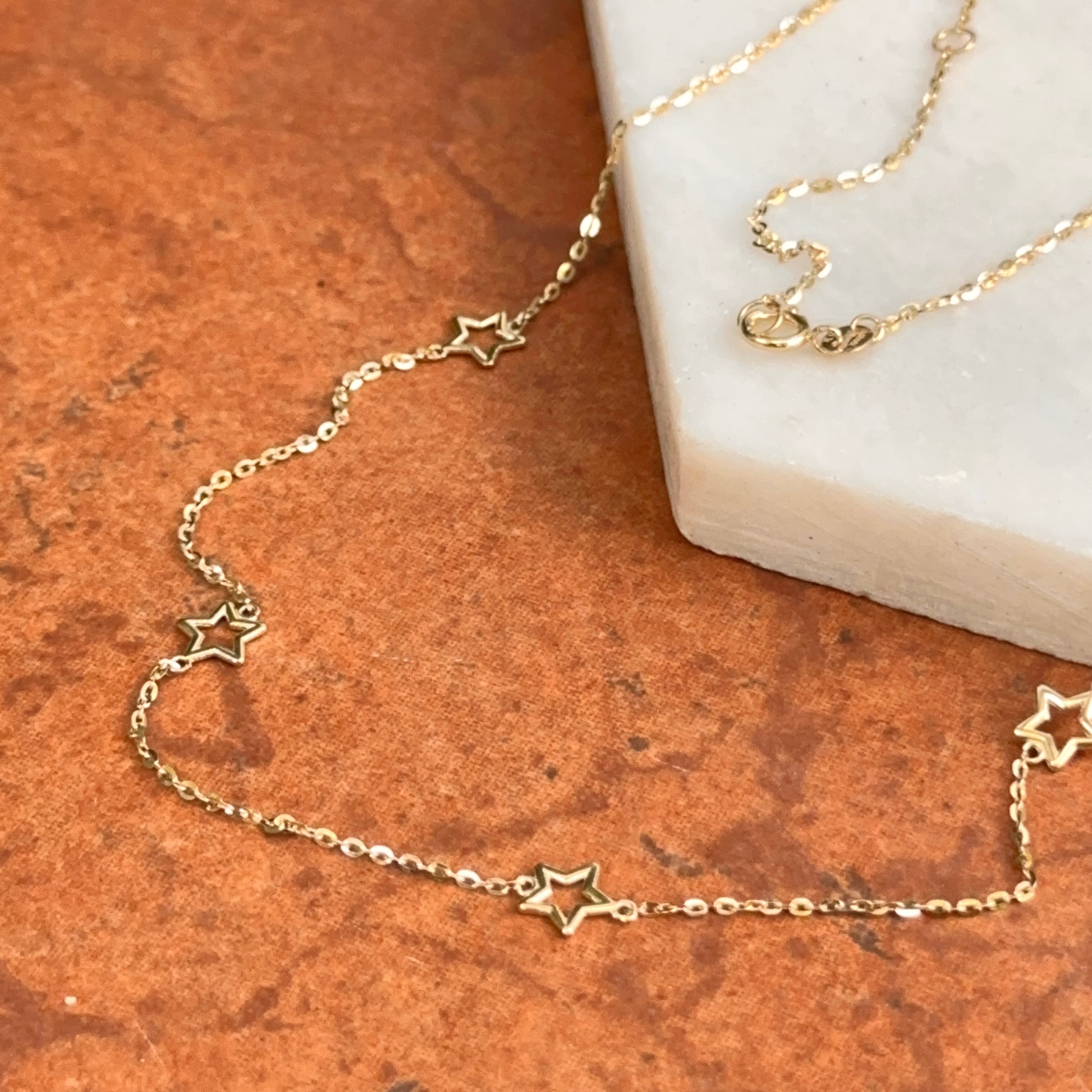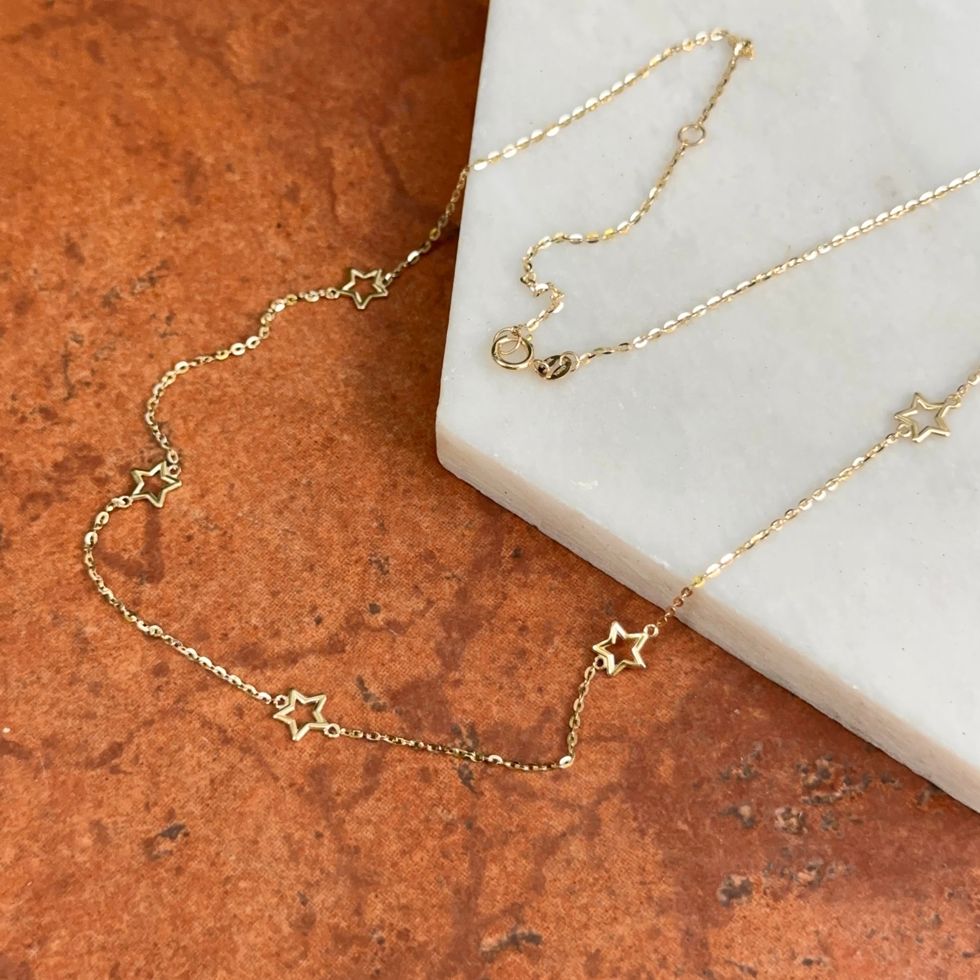 14KT Yellow Gold Stars Station Chain Necklace Cut-Out Stars 18"