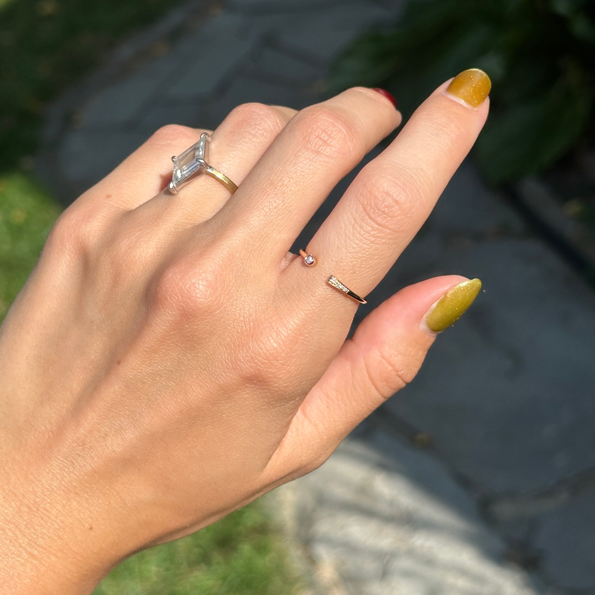 14KT Yellow Gold Diamond Open Band Stackable Band Ring