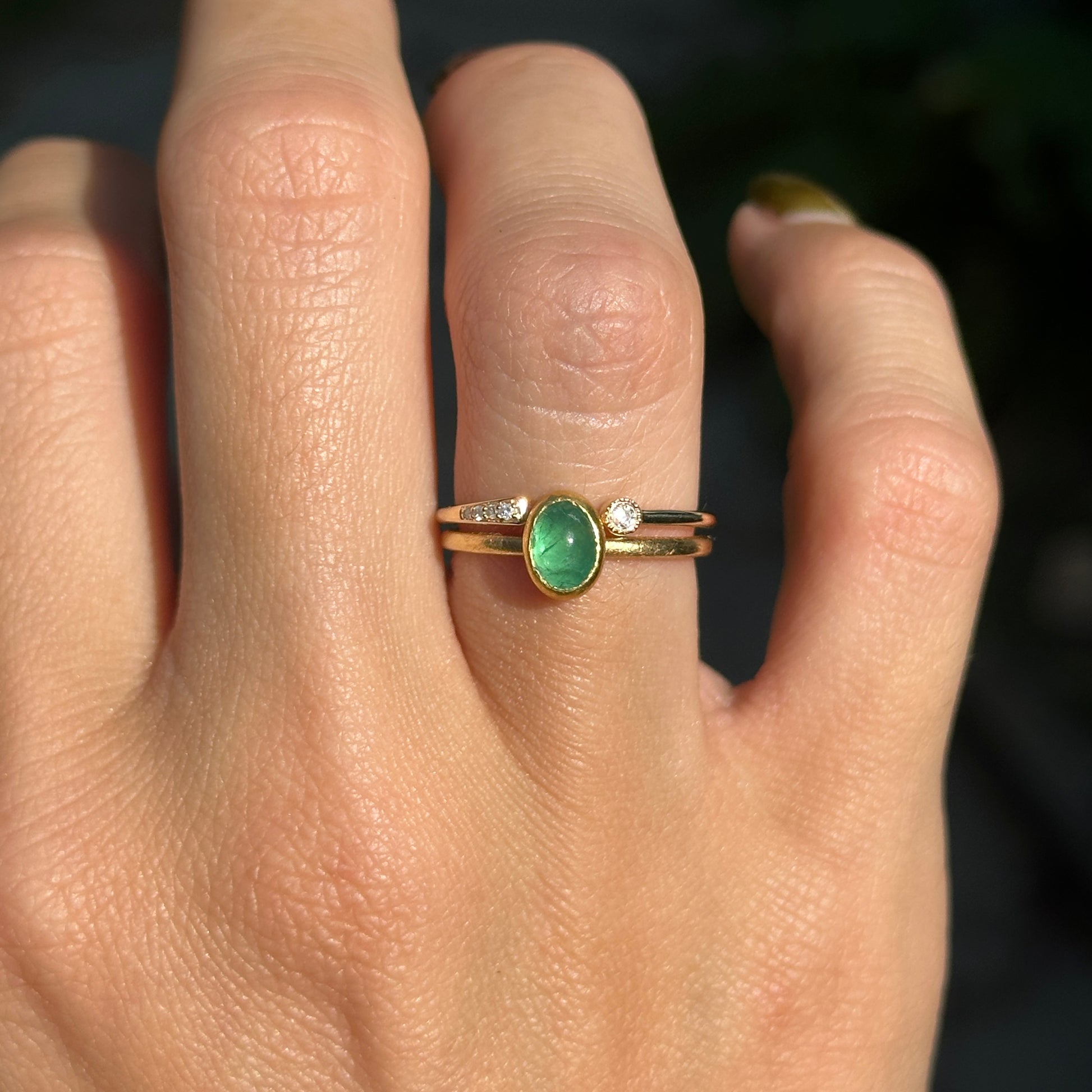 14K yellow gold open shank style ring with diamonds and mil-grain detailing around the diamonds.