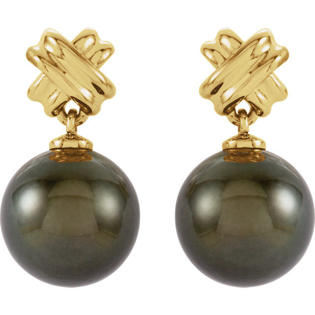 14KT yellow gold post dangle earrings with black Tahitian pearls.