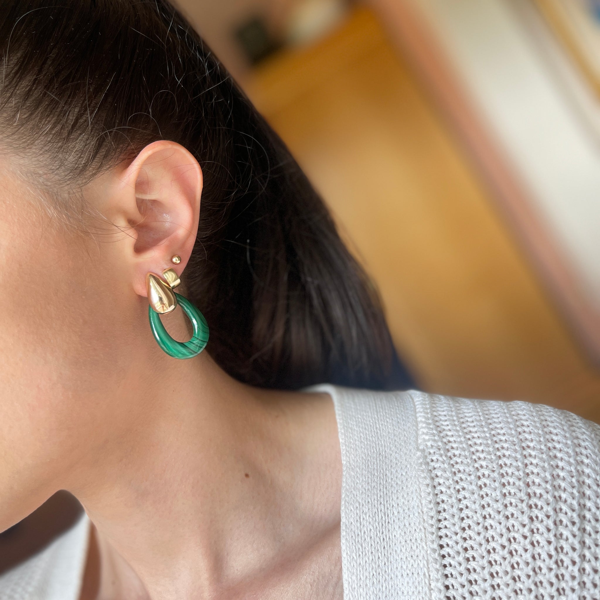 14KT polished + shiny yellow gold teardrop hinged omega back earrings. Wear them as is- or add on charms to create your own look! Charms sold separately.