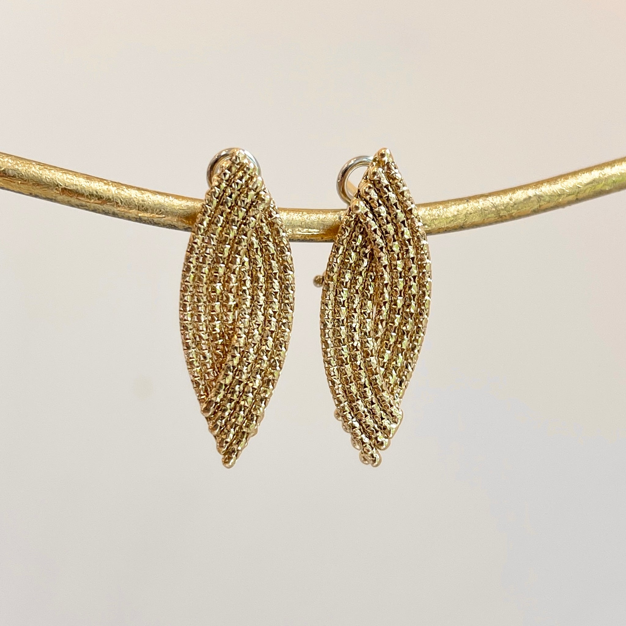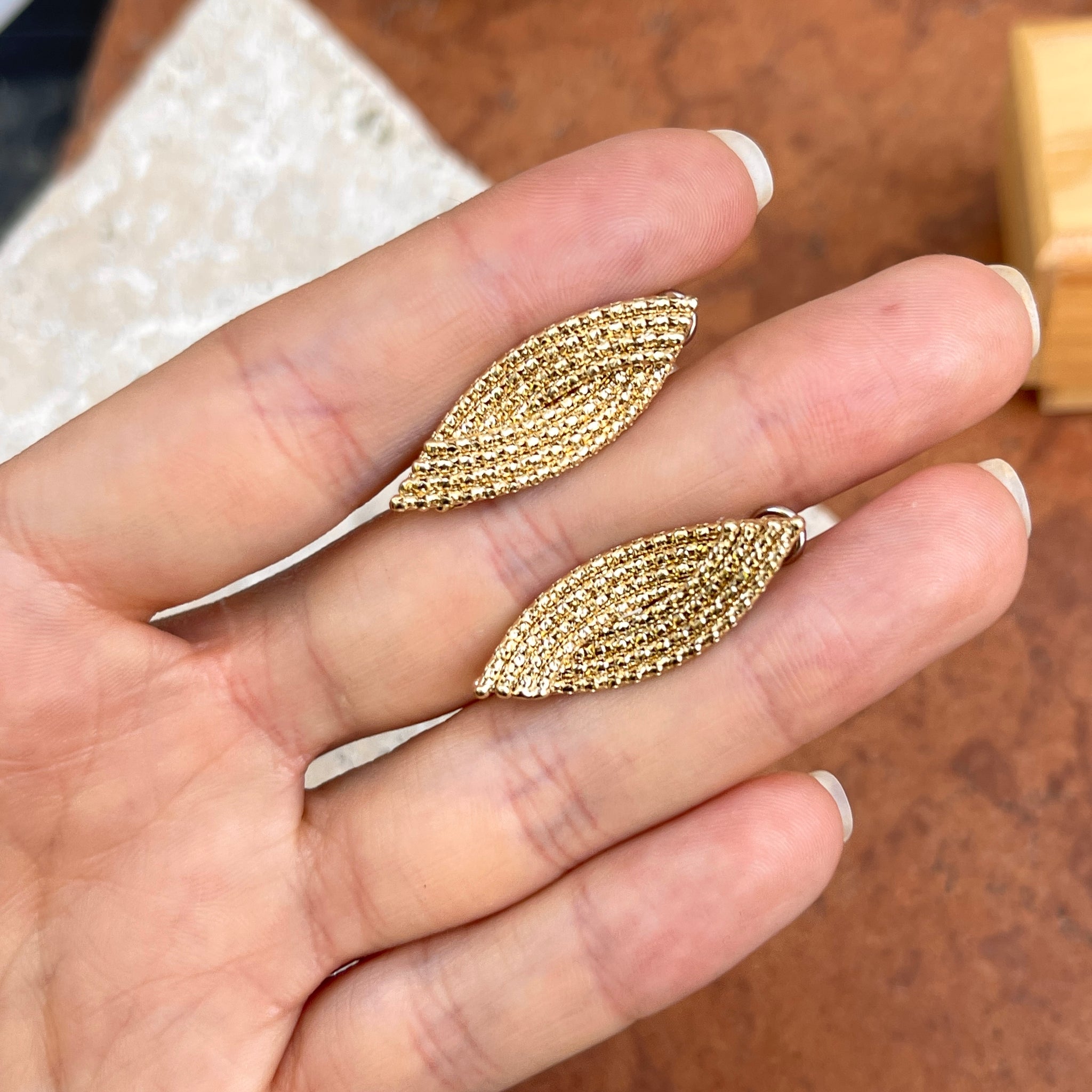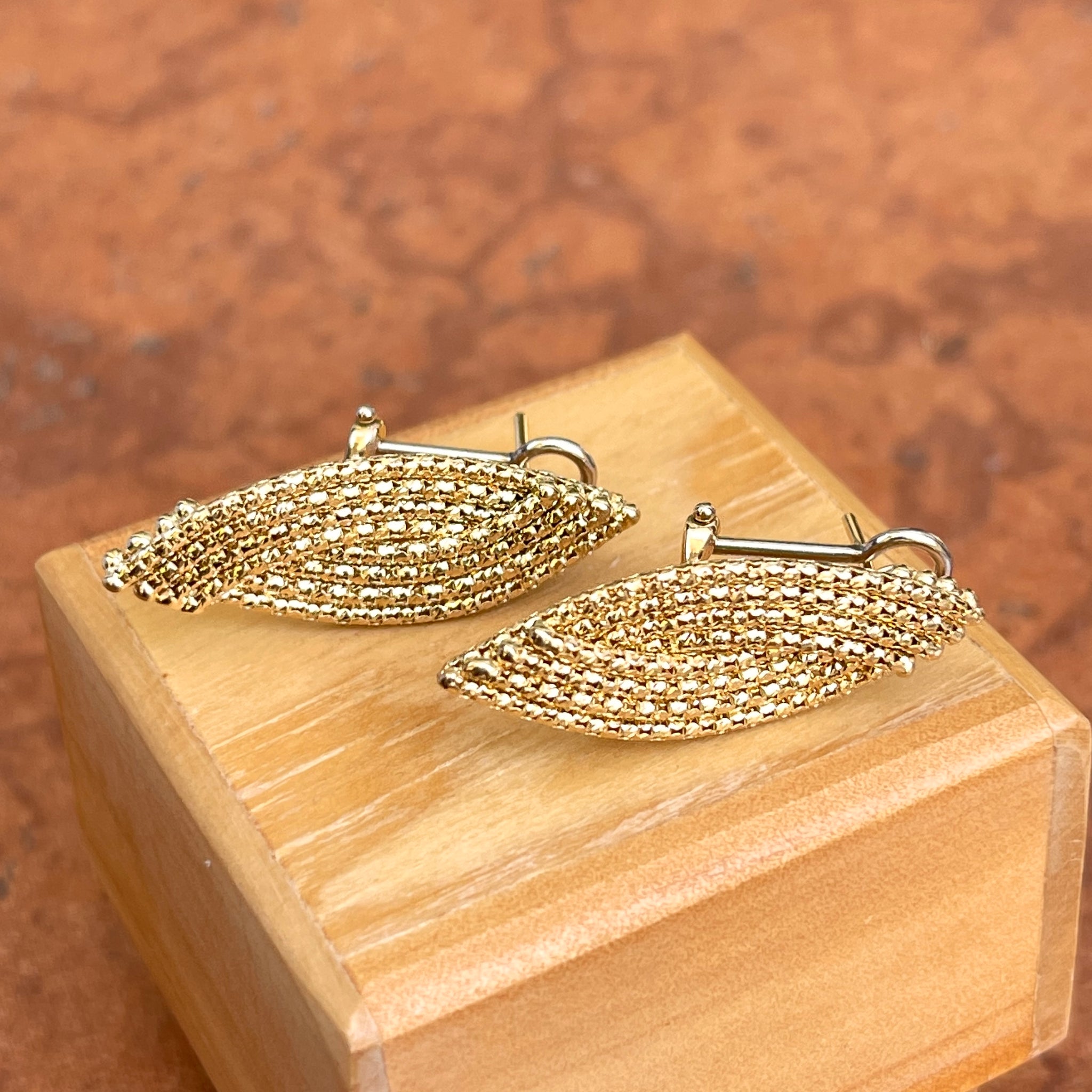 14KT Yellow Gold Textured Woven Marquise-Shaped Dangle Omega Earrings