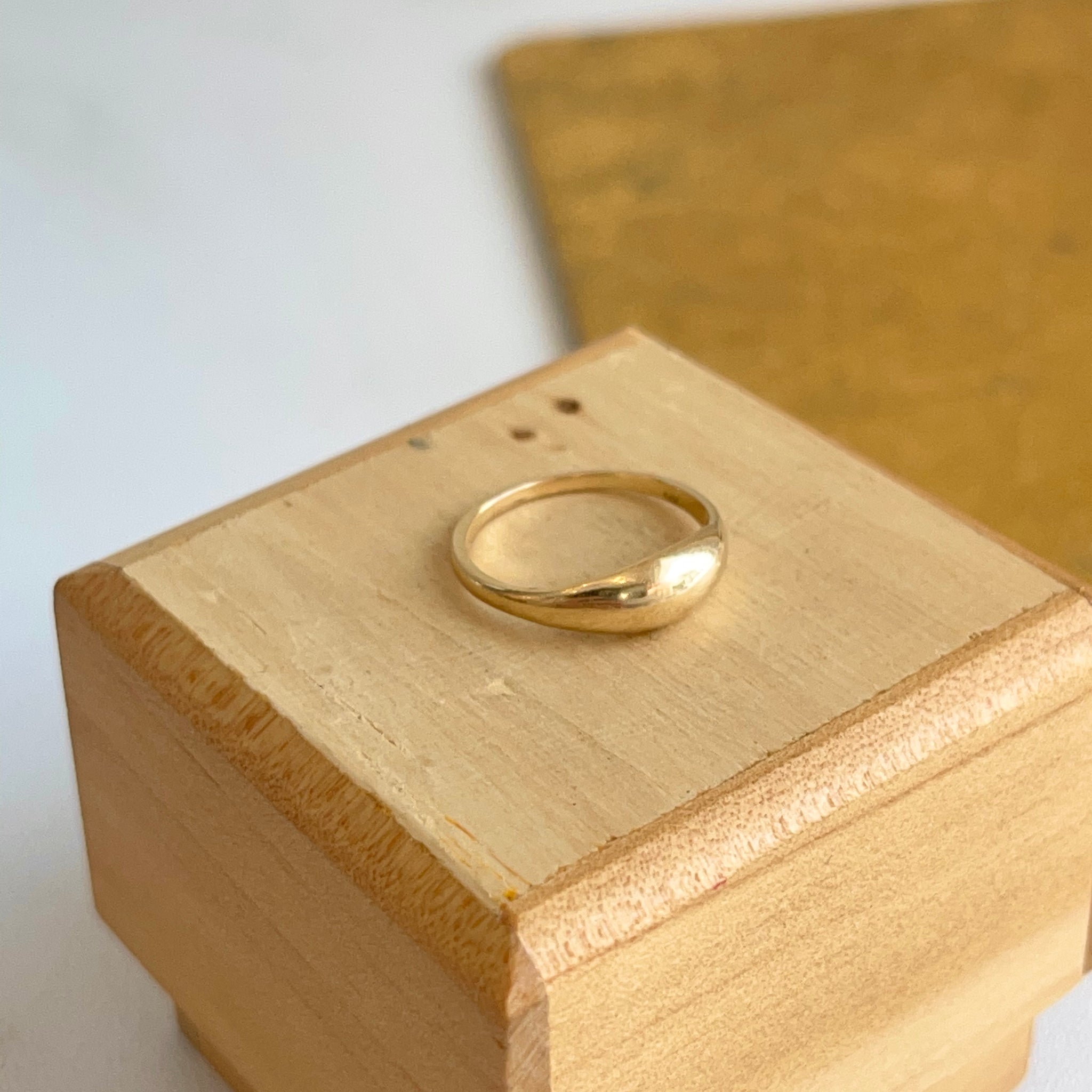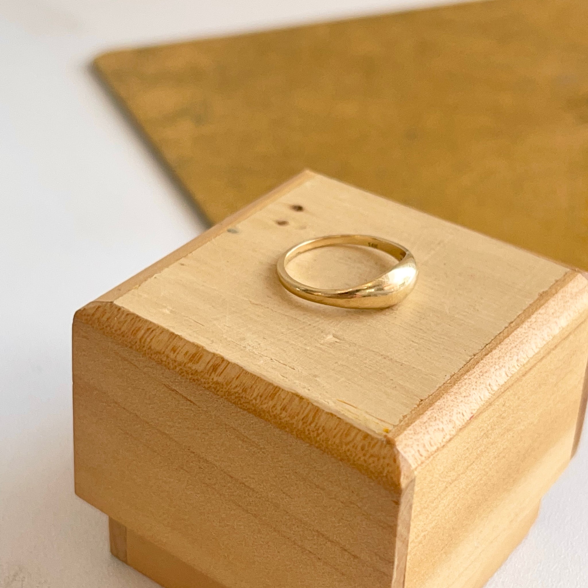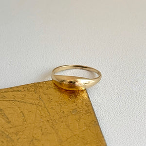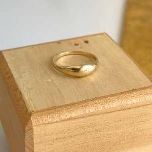 14KT yellow gold dome thin band pinky ring. MADE TO ORDER: Please allow 5-7 business days before shipping. Could be a pinky ring for an adult or a small ring for a child/baby.