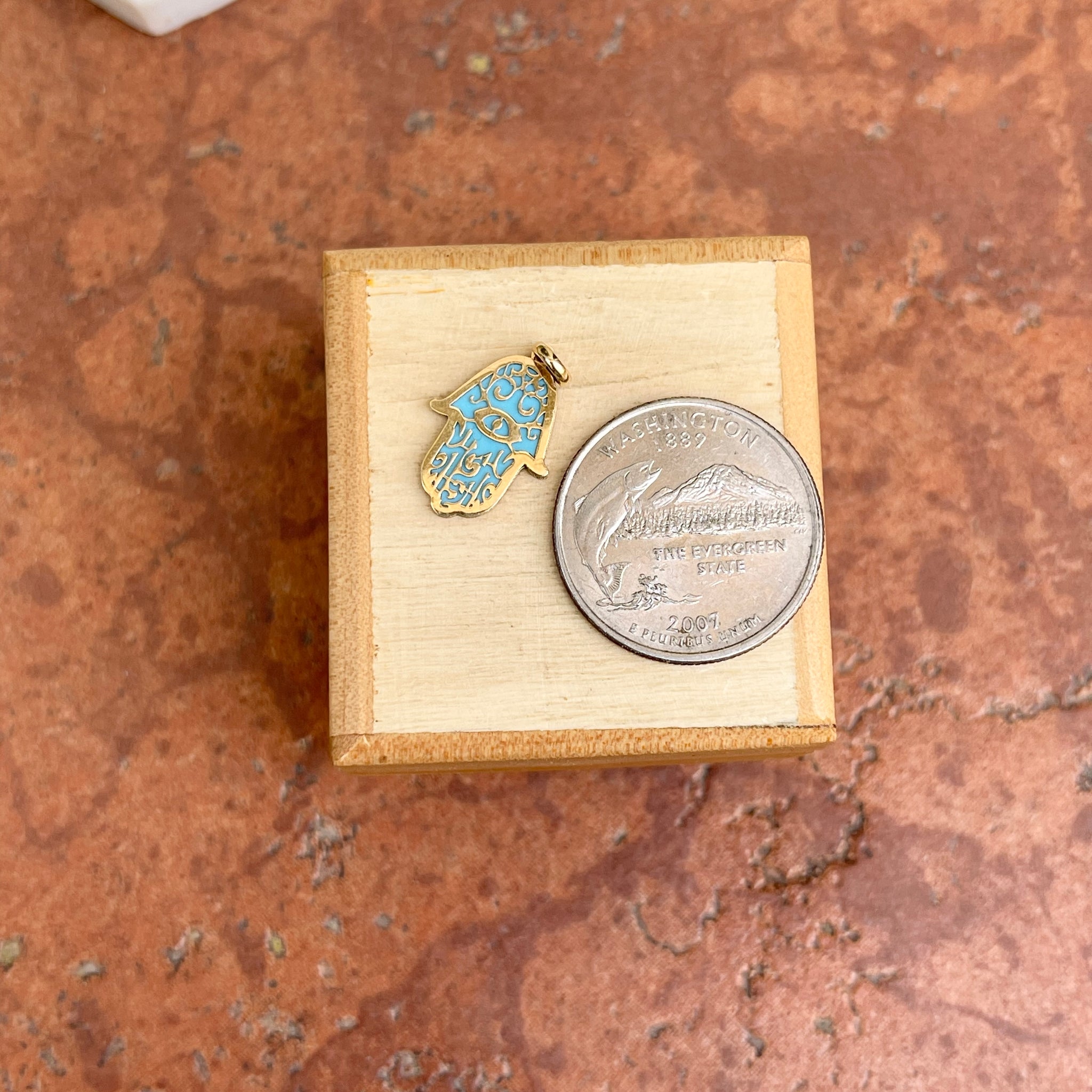 14KT Yellow Gold Turquoise Filigree Hamsa Pendant Charm