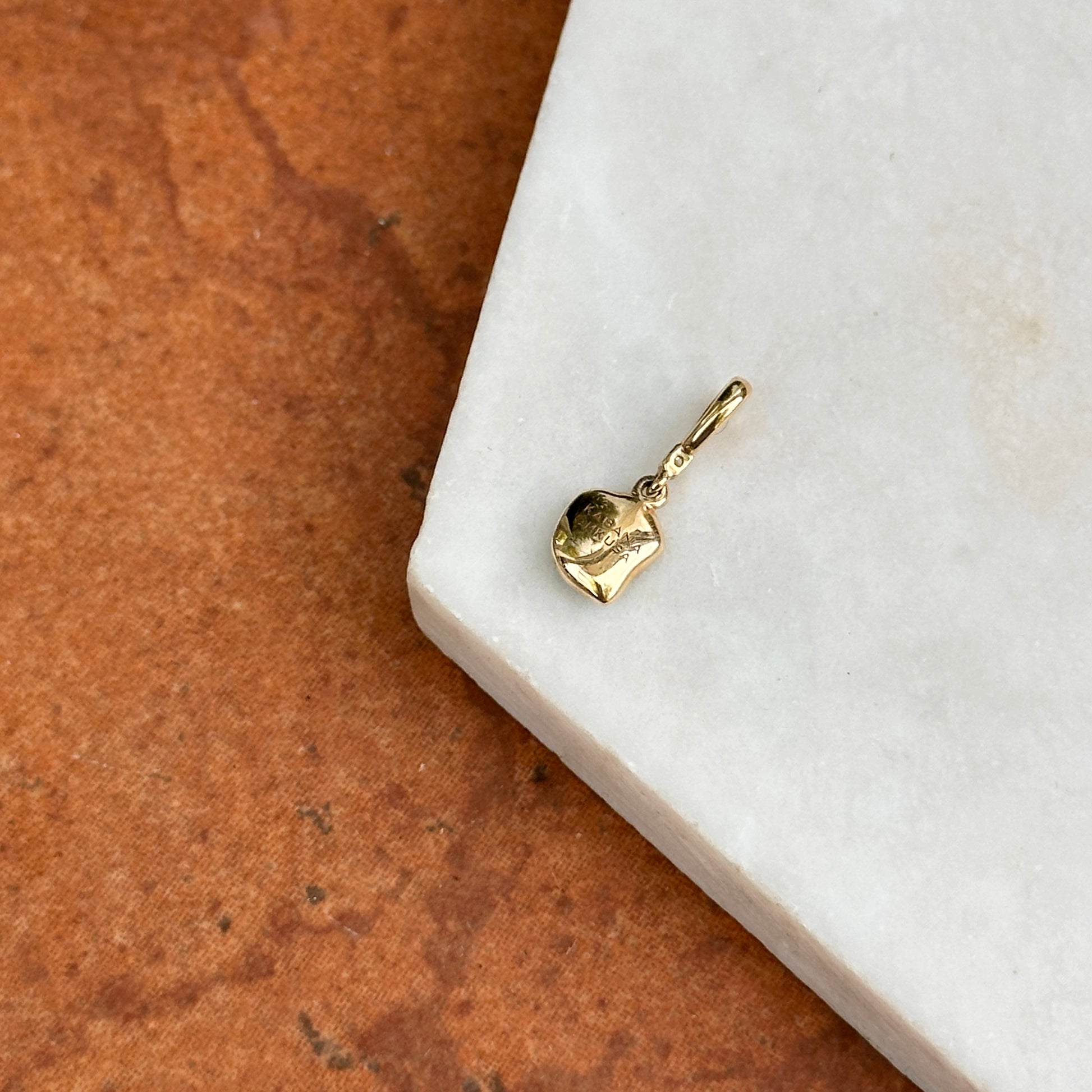 14KT Yellow Gold Unique Shape Turquoise + Round Diamond Small Pendant