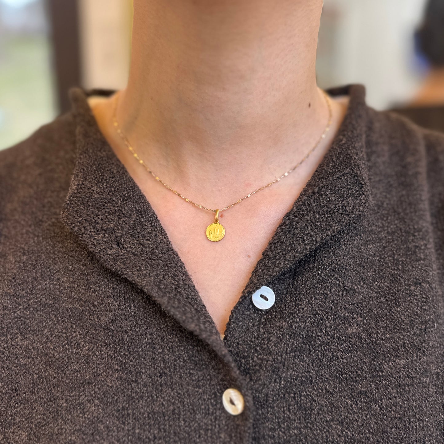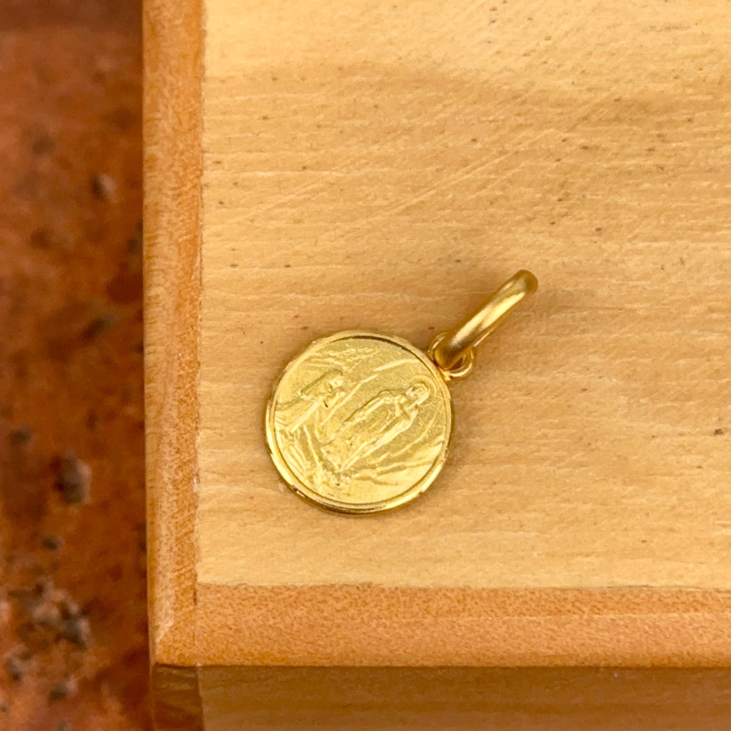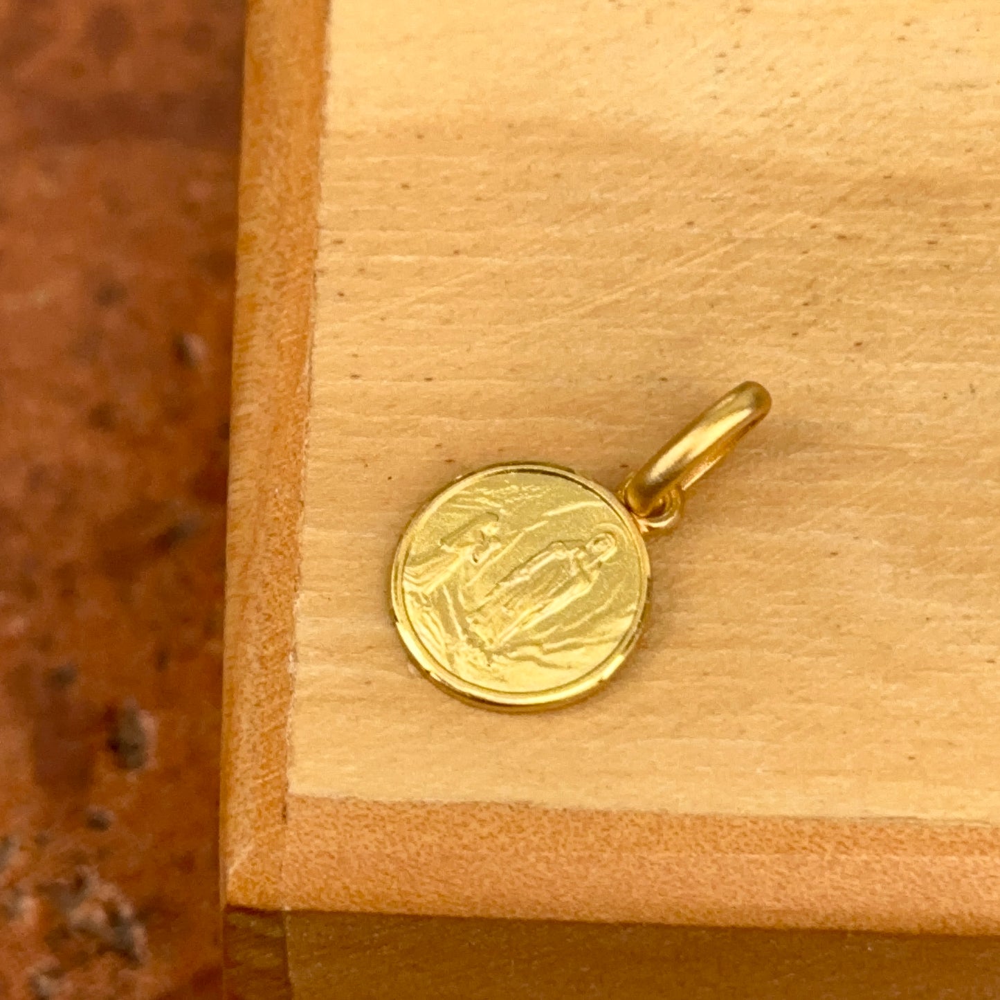14K Yellow Gold Virgin Mary Round Medal Pendant Charm