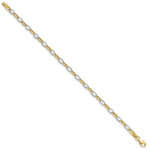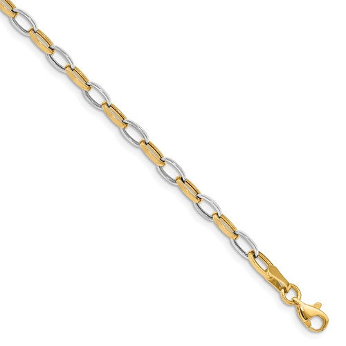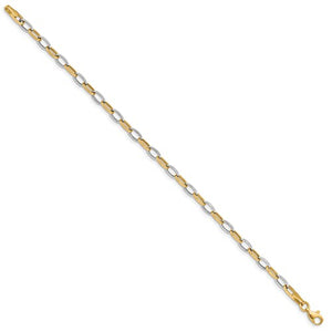 14KT Yellow Gold + White Gold Polished Open Oval Link Bracelet
