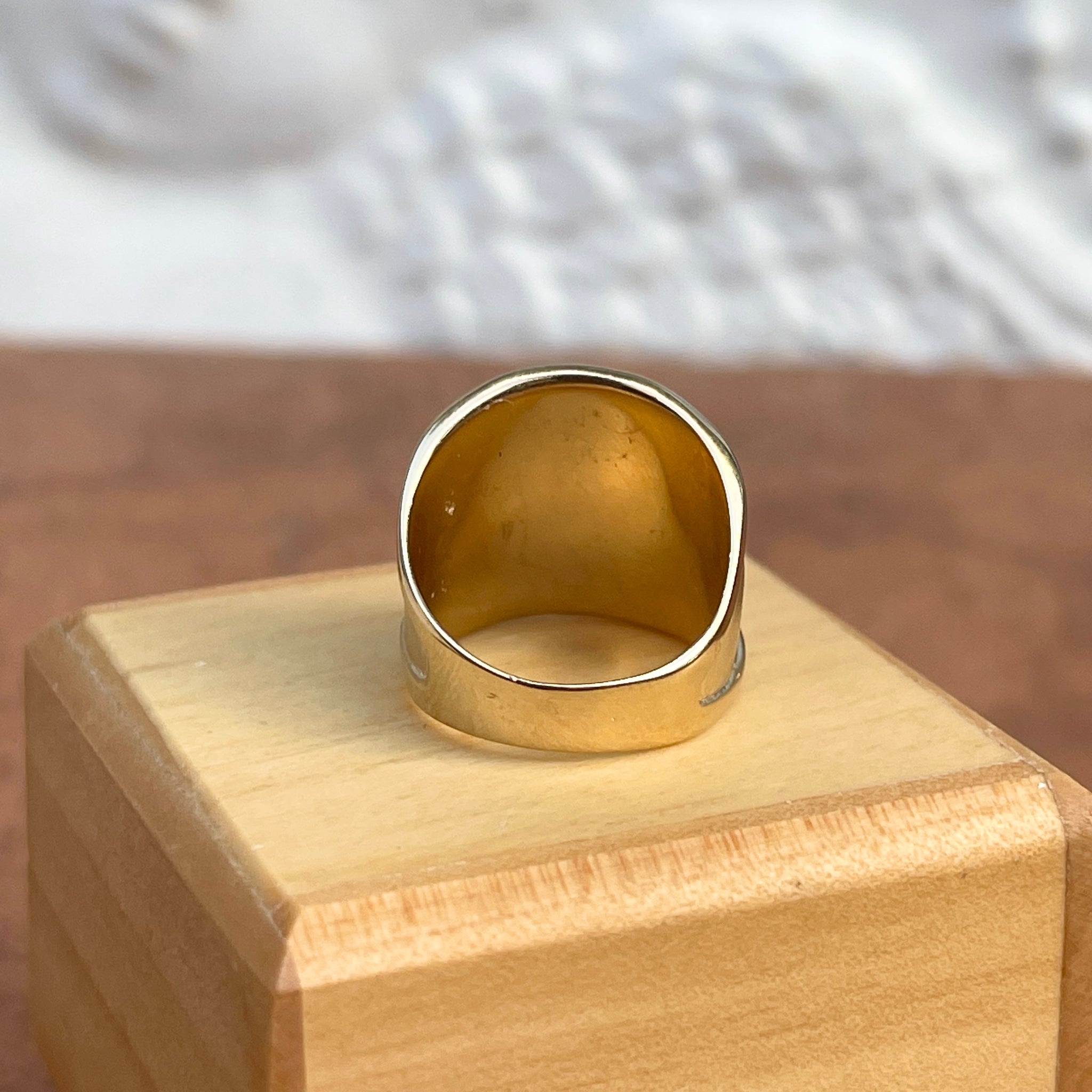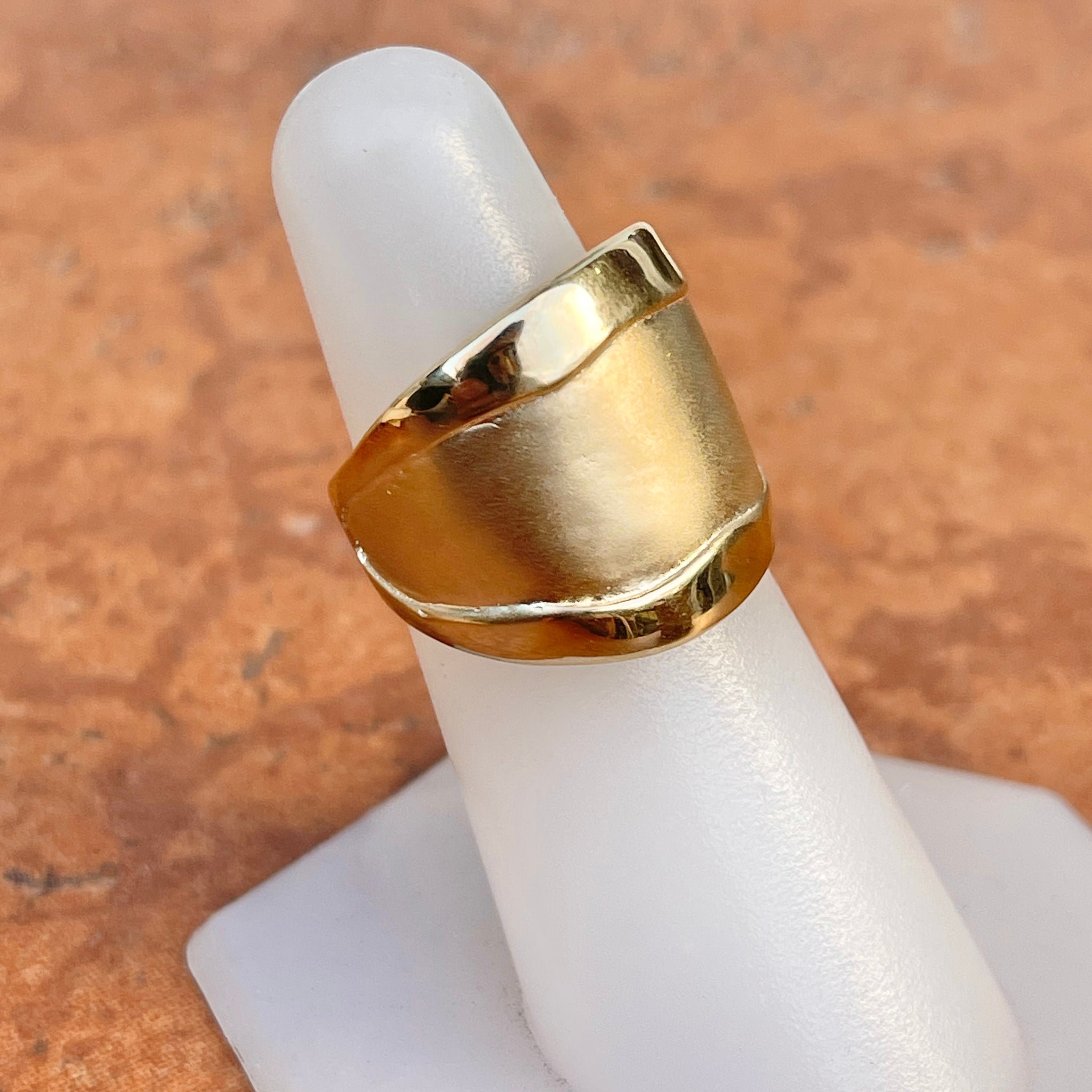 14KT Yellow Gold Wide Artistic Shiny + Matte Cigar Band Ring