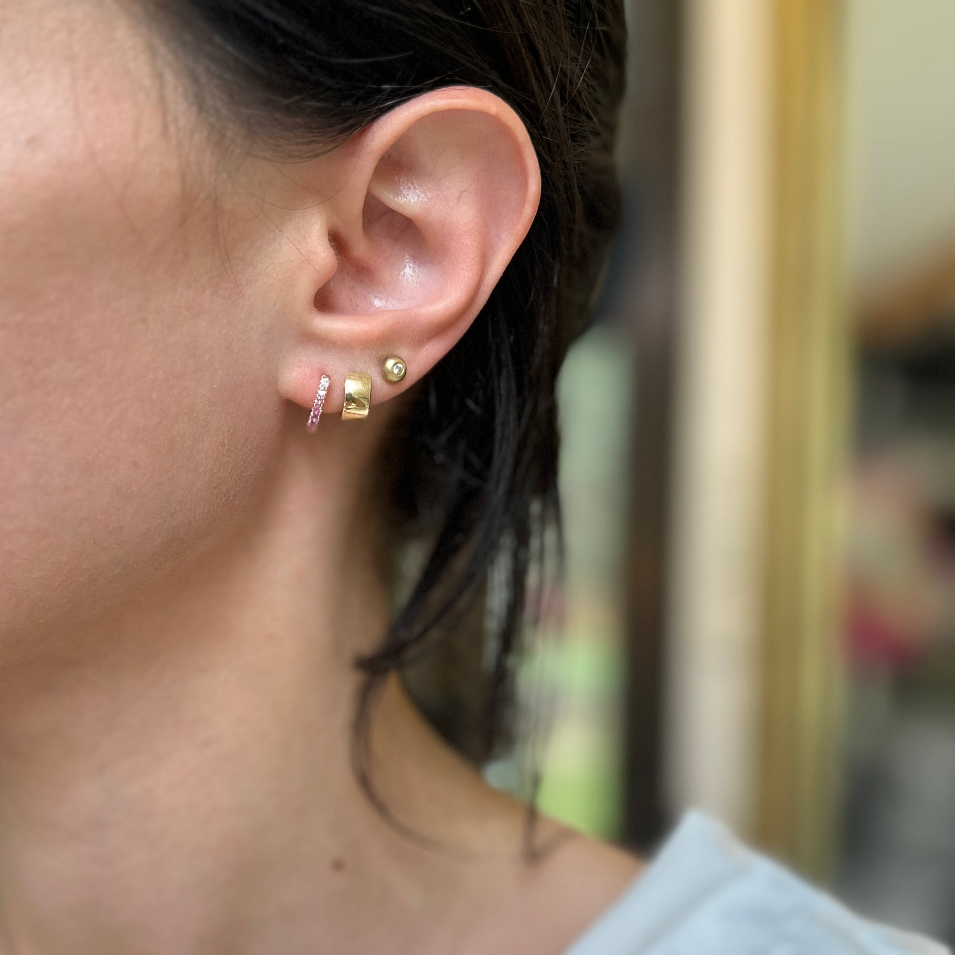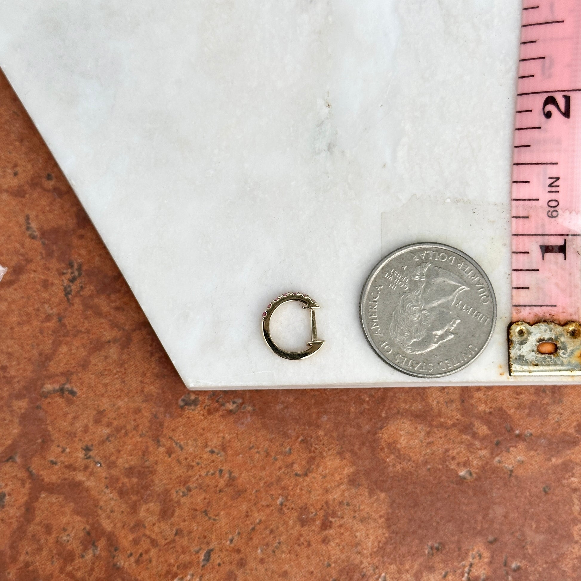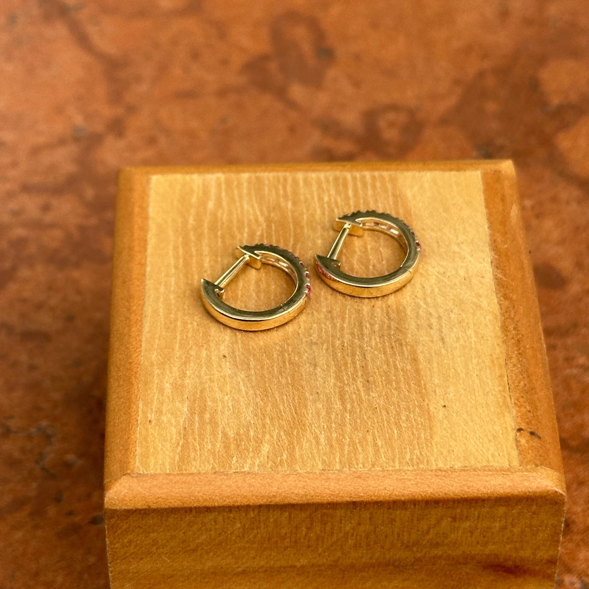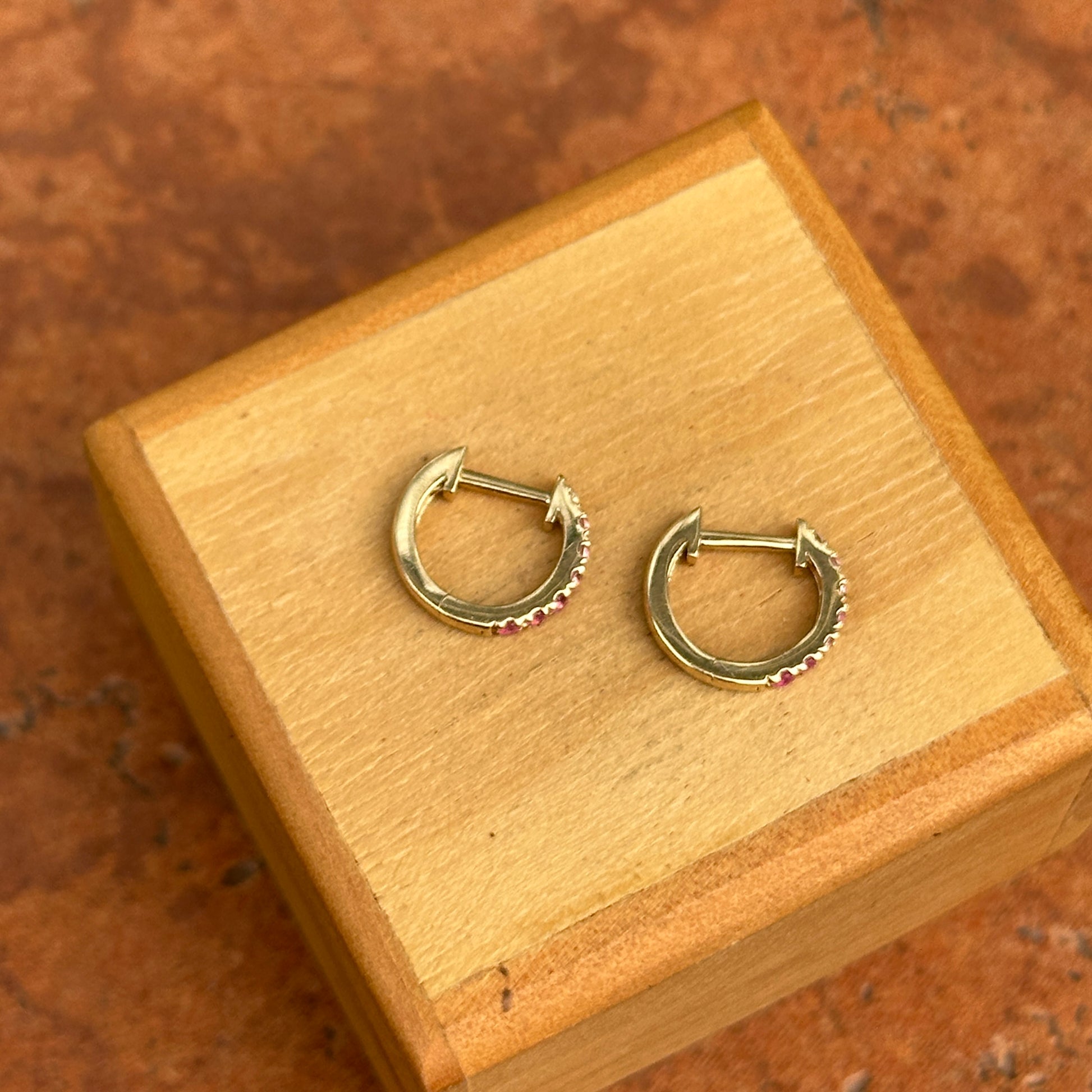 14KT Yellow Round Ombre Pink Sapphire Small Huggie Hoop Earrings 11mm