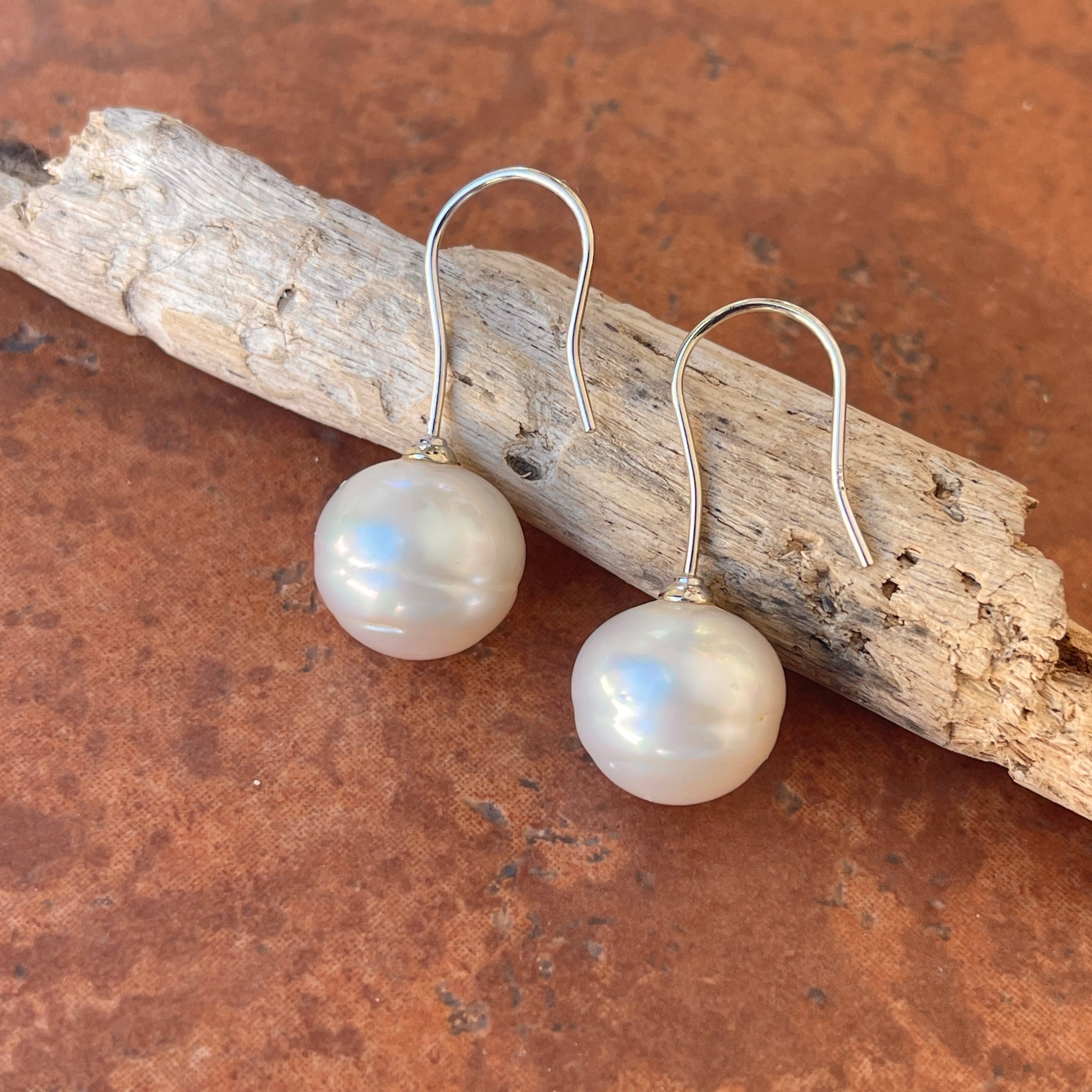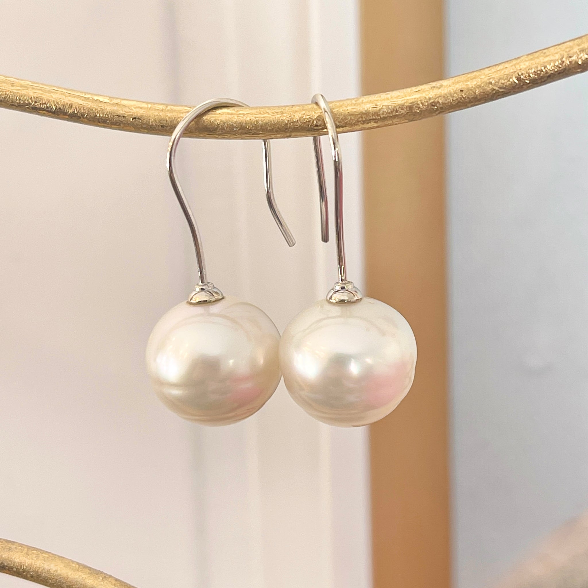 18KT White Palladium Paspaley Pearl Shepherd Hook Drop Earring 14mm