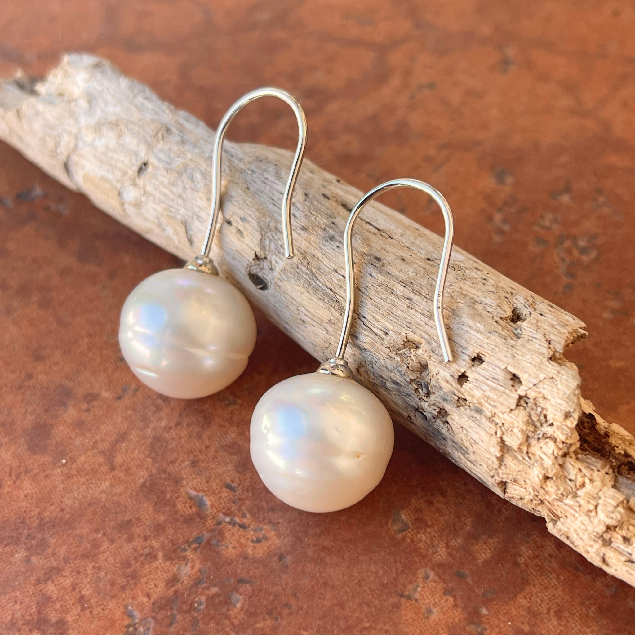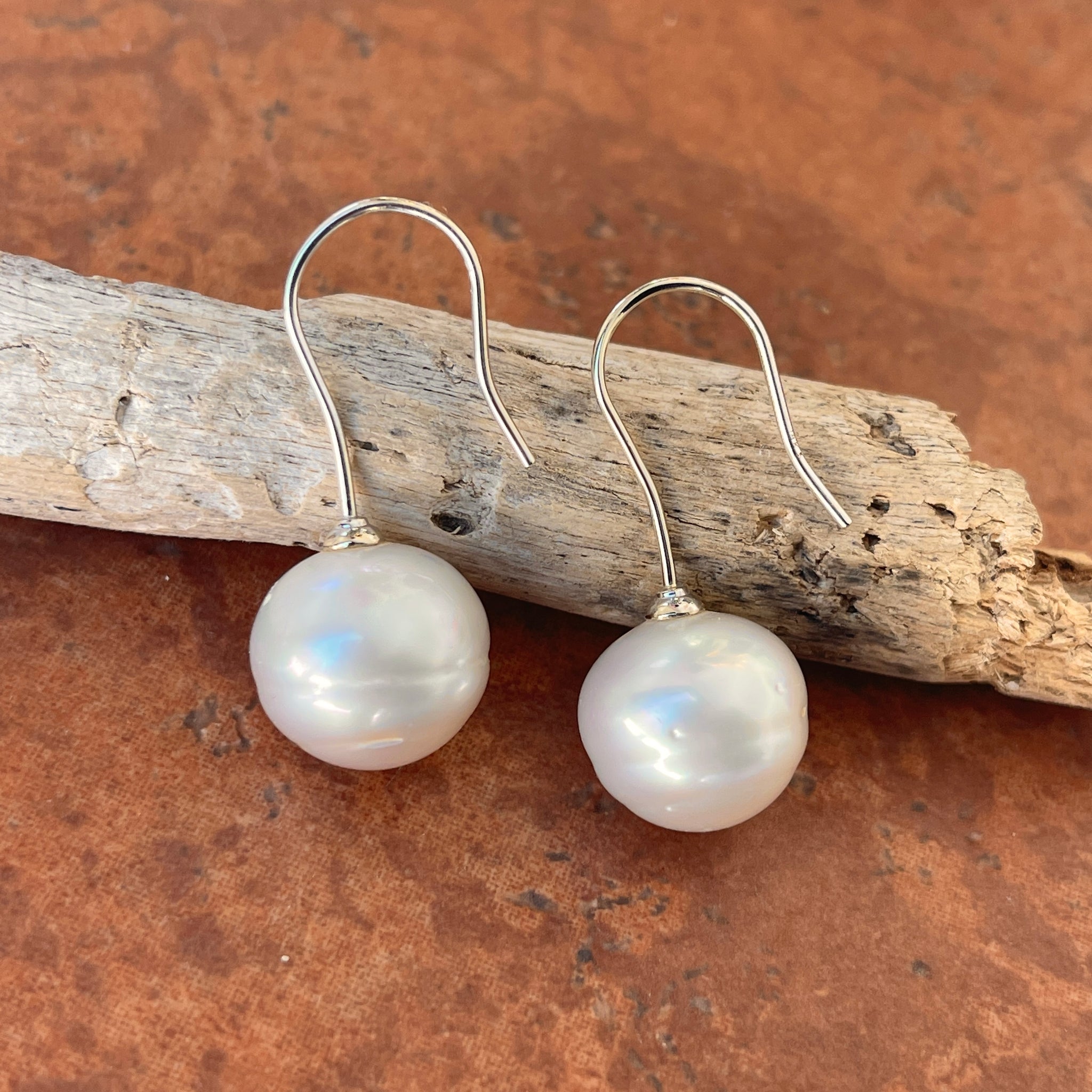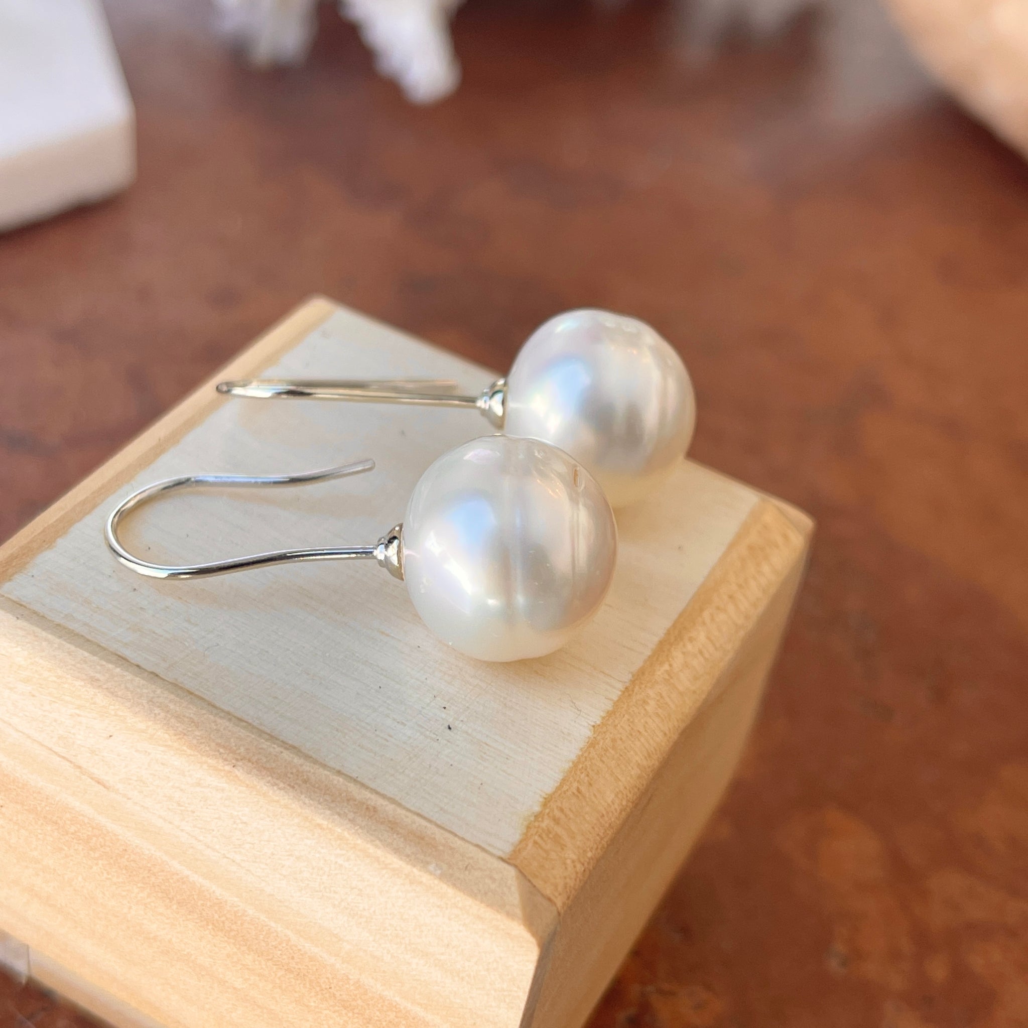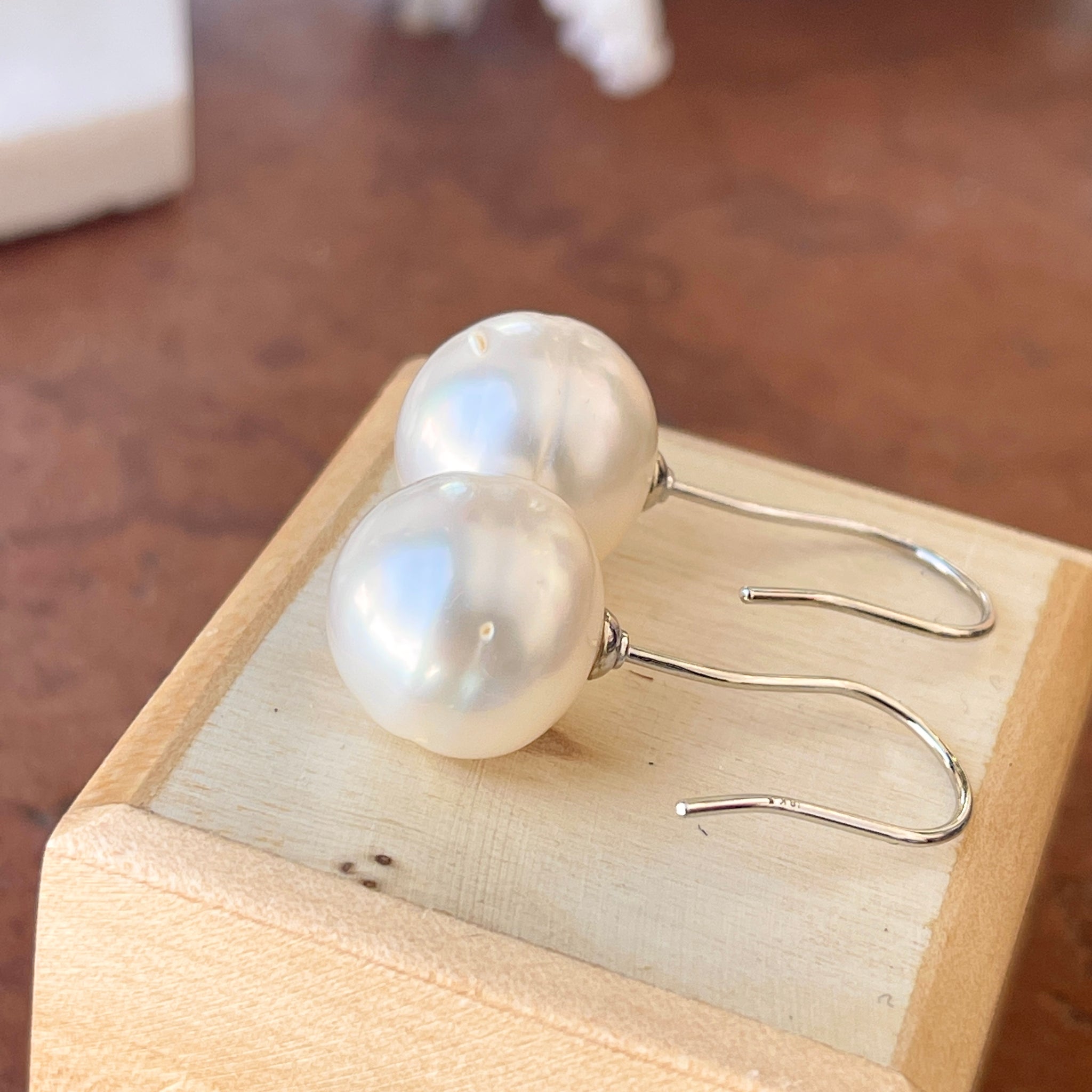 18KT white palladium genuine, cultured Paspaley South Sea Pearl drop euro-wire earrings. Beautiful + rare large Paspaley pearl earrings are perfect for dress-up or wedding attire! These are the exact pair you will receive.