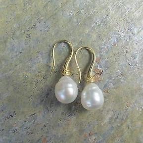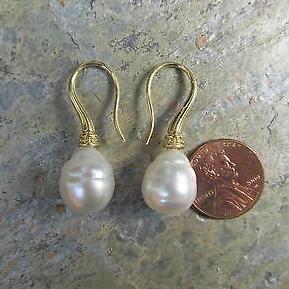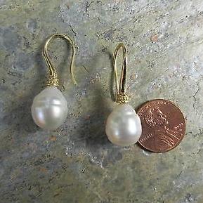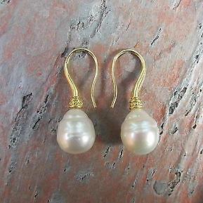 18KT yellow gold genuine, cultured Paspaley South Sea Pearl shepherd hook earrings.