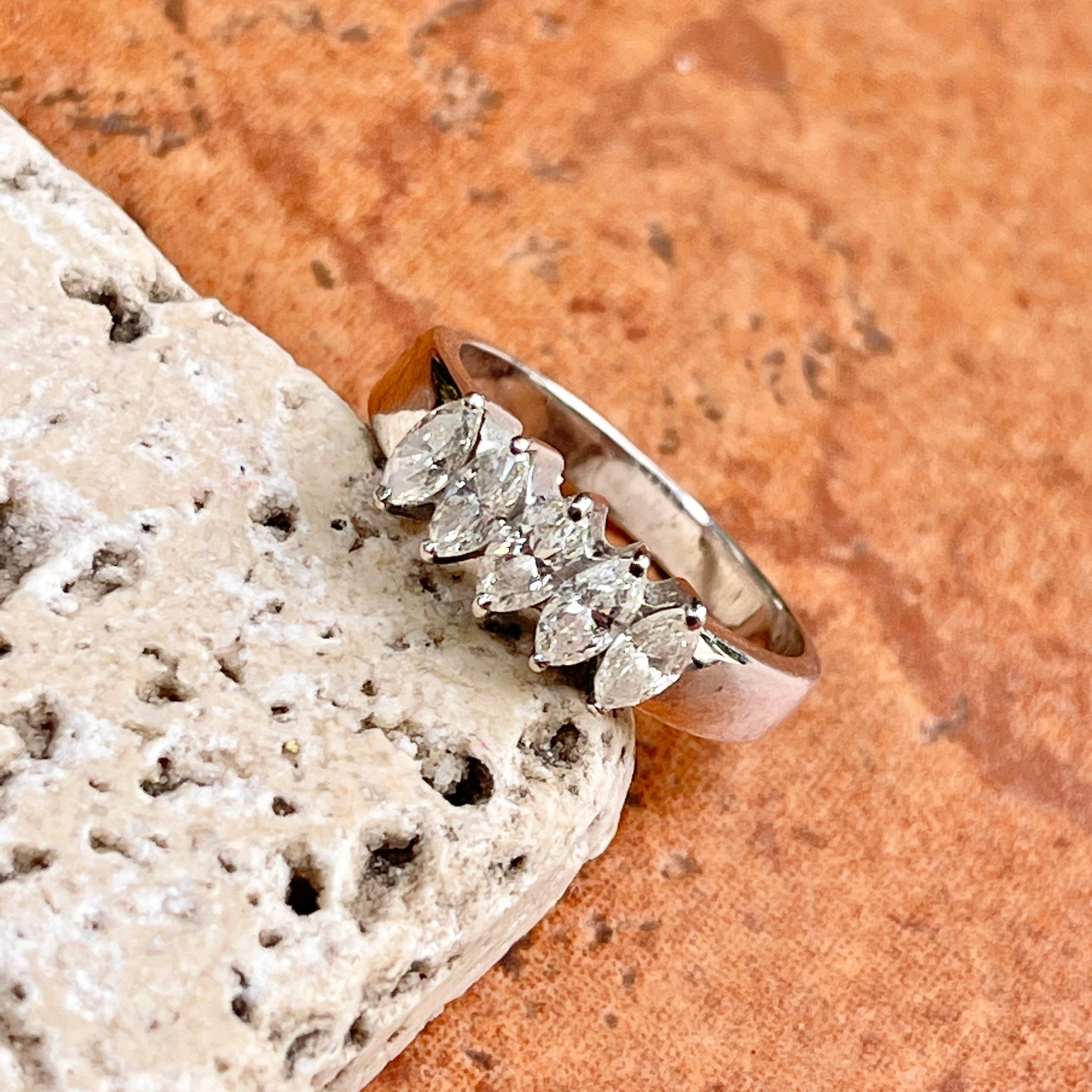 18KT White Gold Estate Marquise Diamond Anniversary Ring