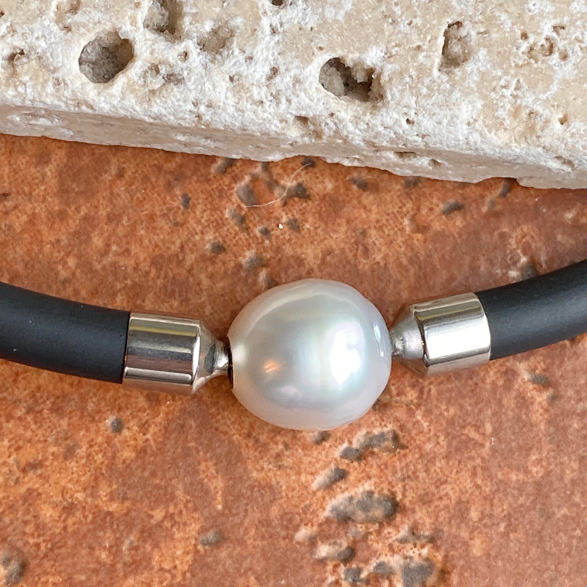 Cultured Paspaley South Sea Pearl pendant swap with 18KT white gold key ends. The Paspaley "Circe" shape is not a perfect circle but more ovalish in shape. The pearl shown is the exact pearl you will receive. Change the look of this pendant by instantly snapping it onto a variety of swap style necklaces. This pendant is to be used/interchanged exclusively with swap necklaces. We have a variety of swap necklaces to fit this pendant- sold separately.