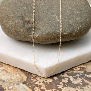 18KT yellow gold thin cable rope chain necklace. The staple, everyday chain necklace you can slide a variety of pendants onto! Also available in 10K yellow gold.