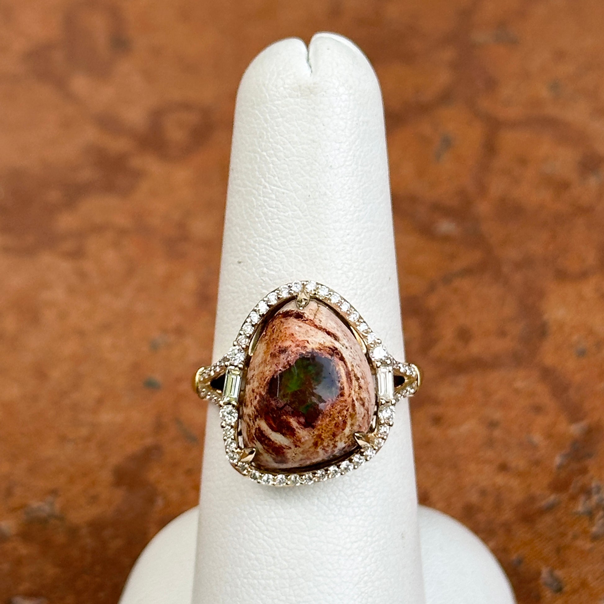 18K Yellow Gold Dragons Egg Opal Baguette and Round Diamond Ring