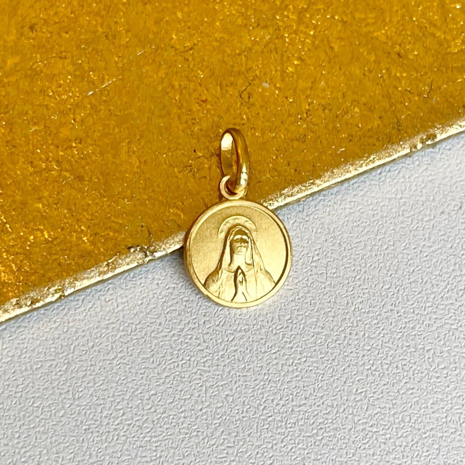 18KT Yellow Gold Matte Our Lady of Lourdes Medal Pendant 10mm