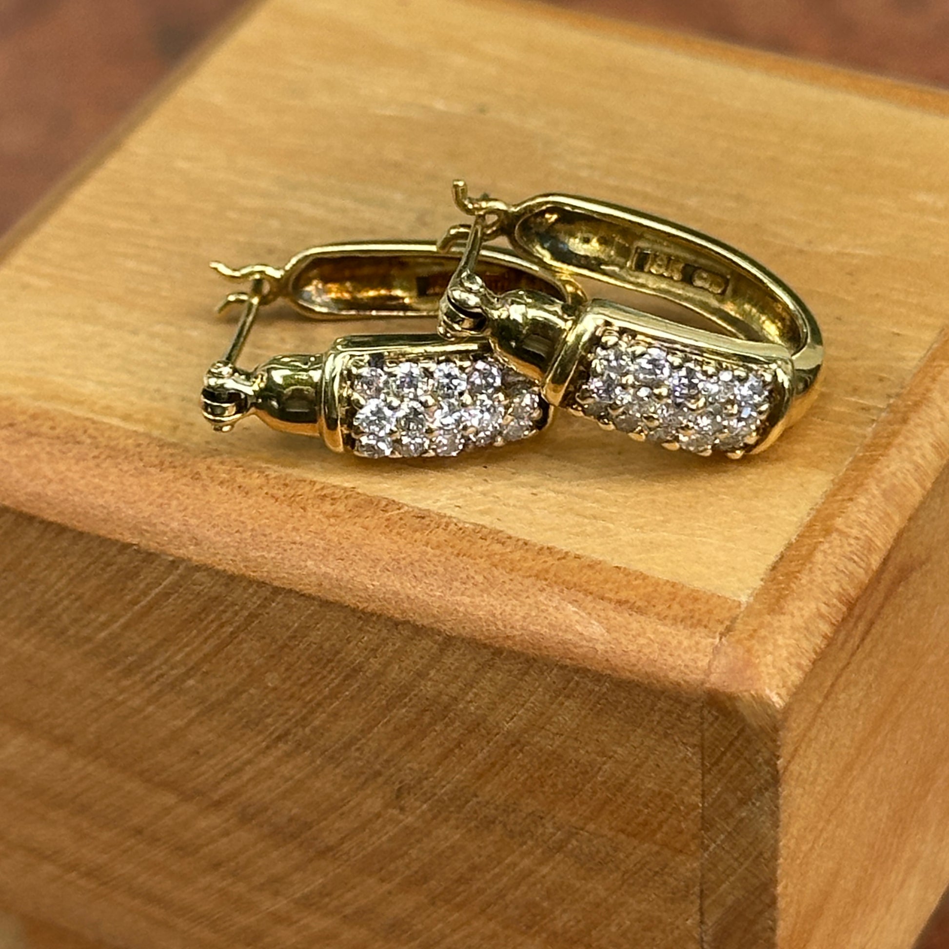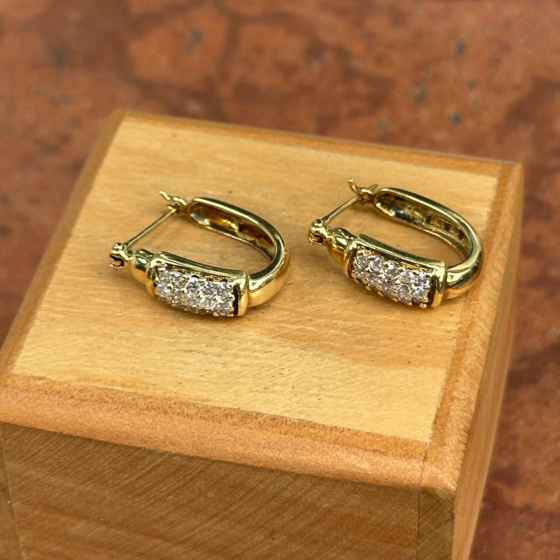 18K Yellow Gold Round Multi Diamond Oval Hoop Earrings