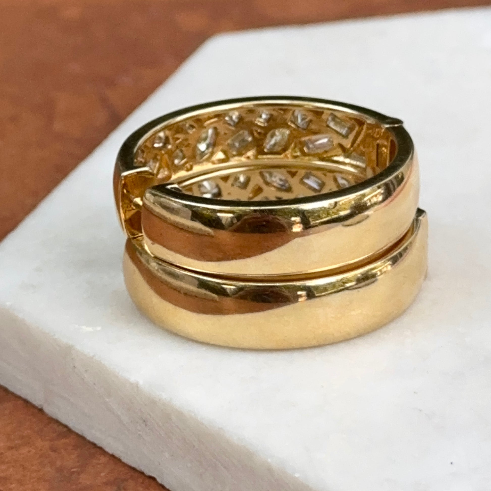 18K Yellow Gold Multi Diamond Huggie Large Hinged Hoop Earrings