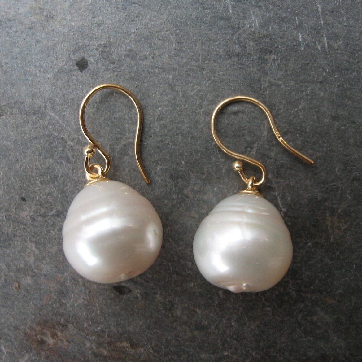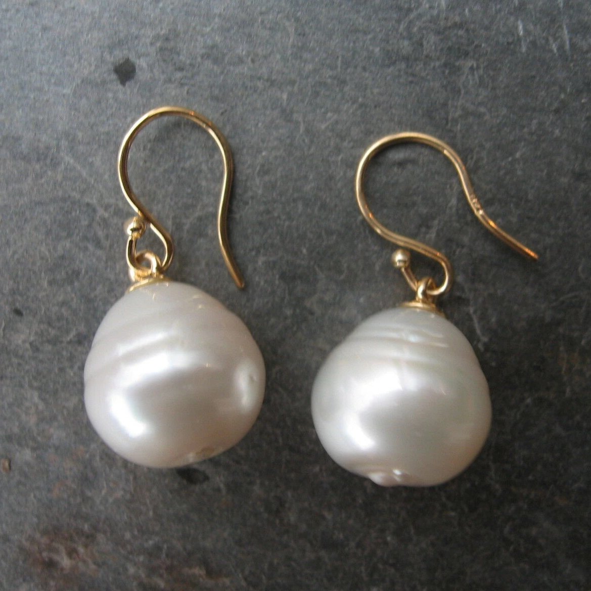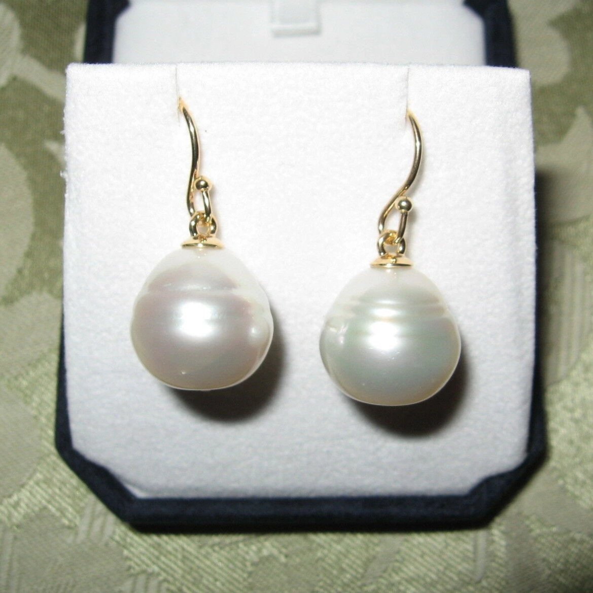 18KT yellow gold genuine, cultured, Paspaley South Sea pearl dangle drop hook earrings. These are a great, versatile item. The Pearls can be removed from the ear wires and worn with other earrings, etc, and the ear wires can be worn with other charms!
