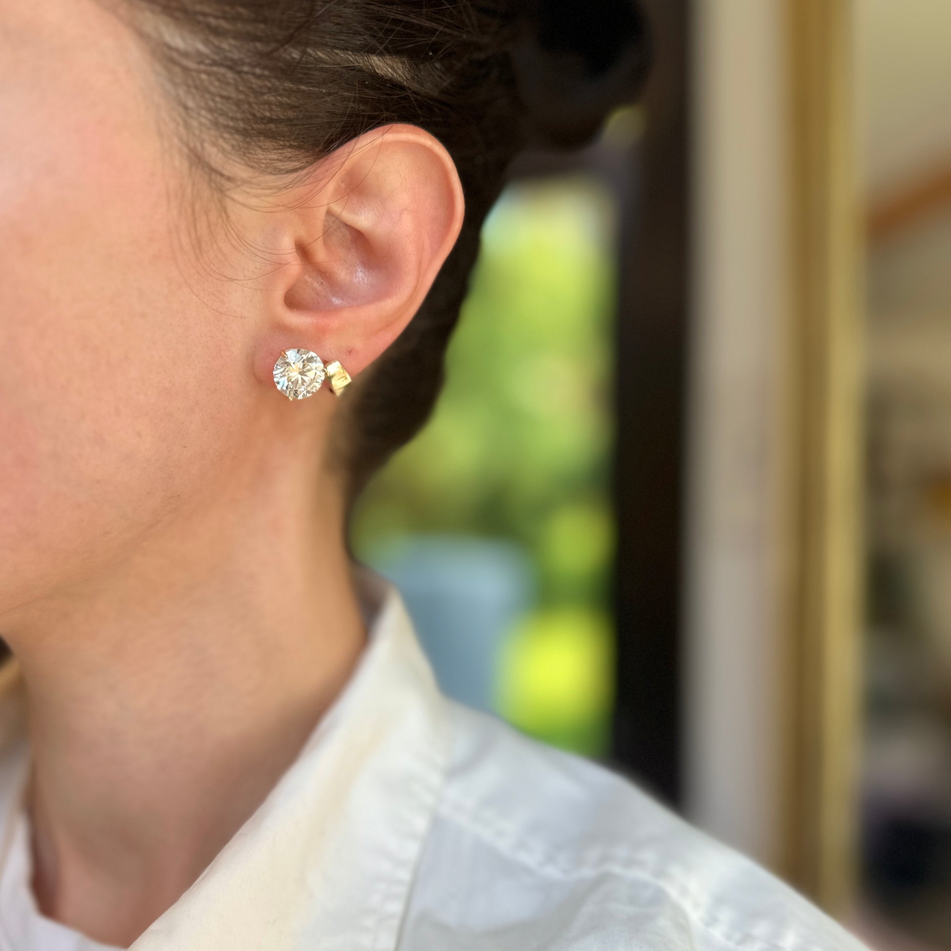 18KT Yellow Gold Round 10 Carat Lab Grown Diamonds 3-Prong Stud Earrings + Paddle Backs