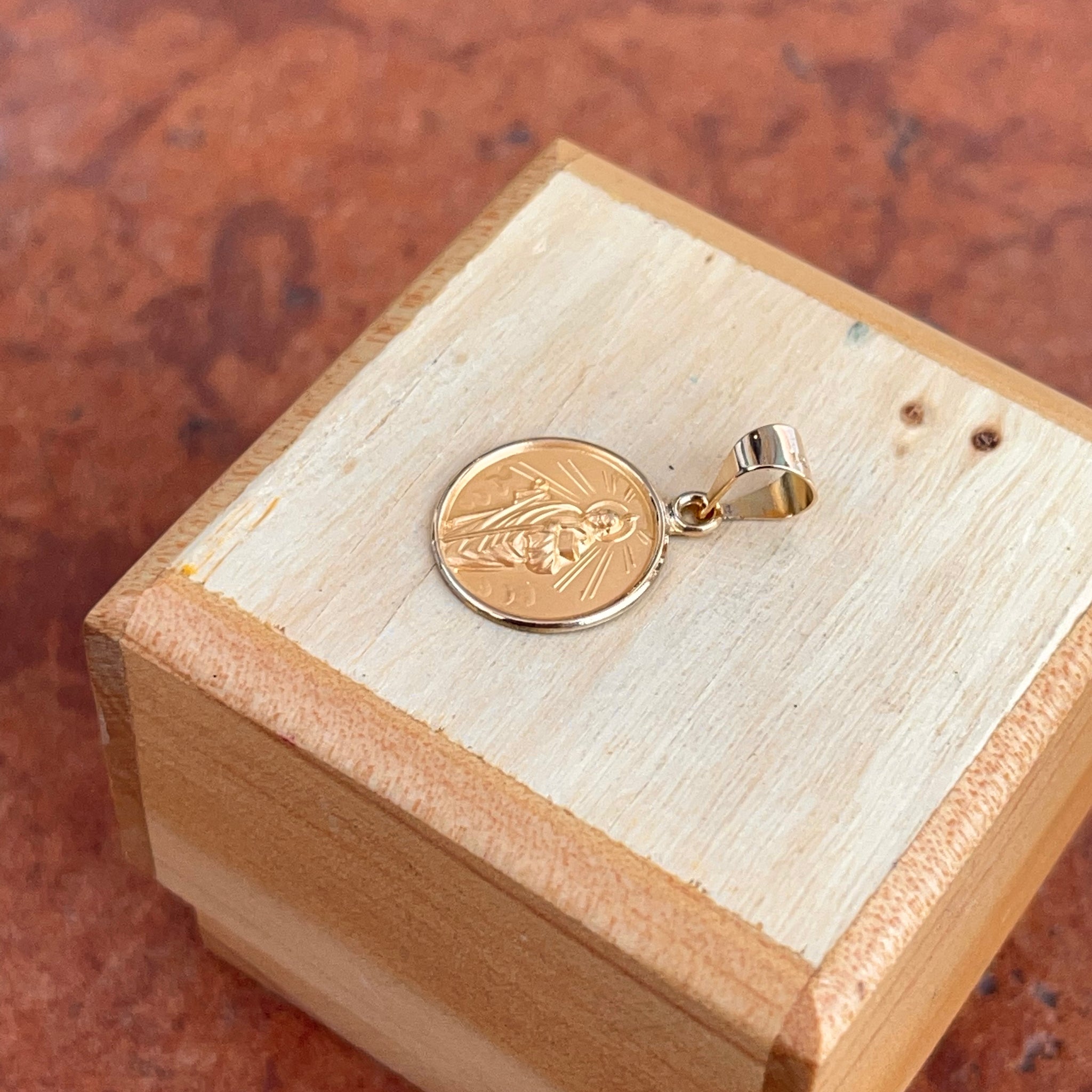 18KT Yellow Gold Satin St Jude Thaddeus Round Medal Pendant 13mm