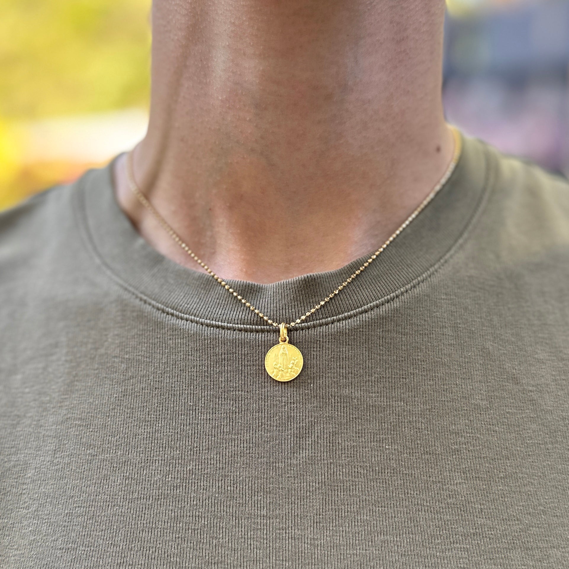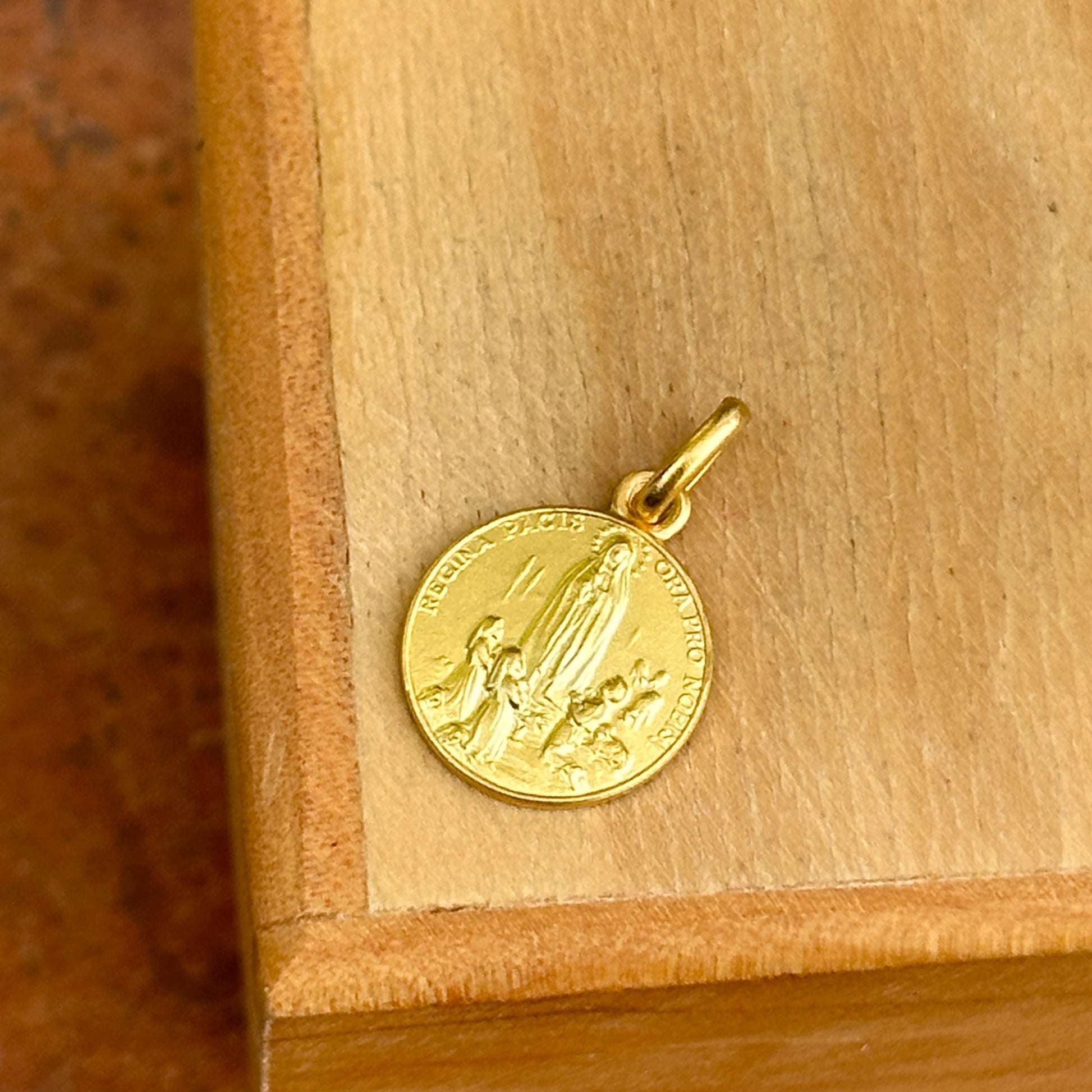 18KT Yellow Gold Solid Our Lady of Fatima Round Medal Pendant Charm 12mm