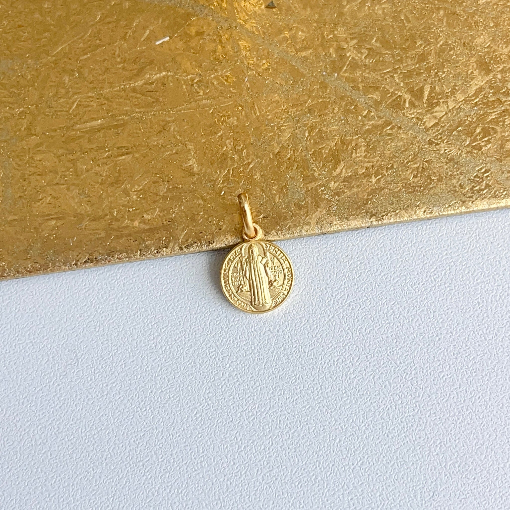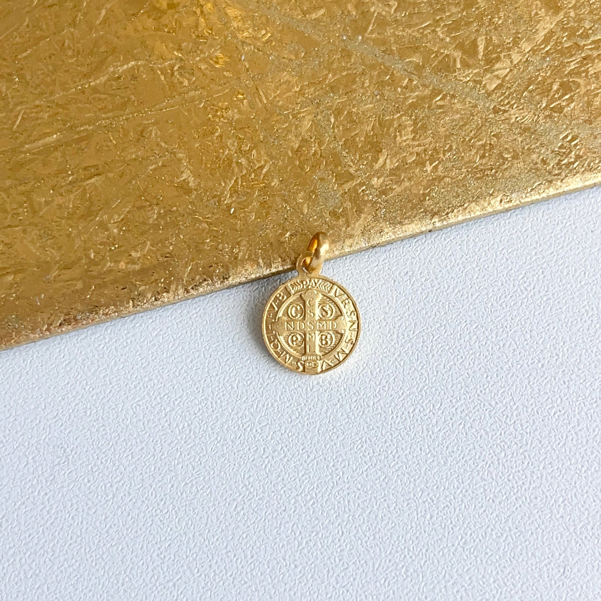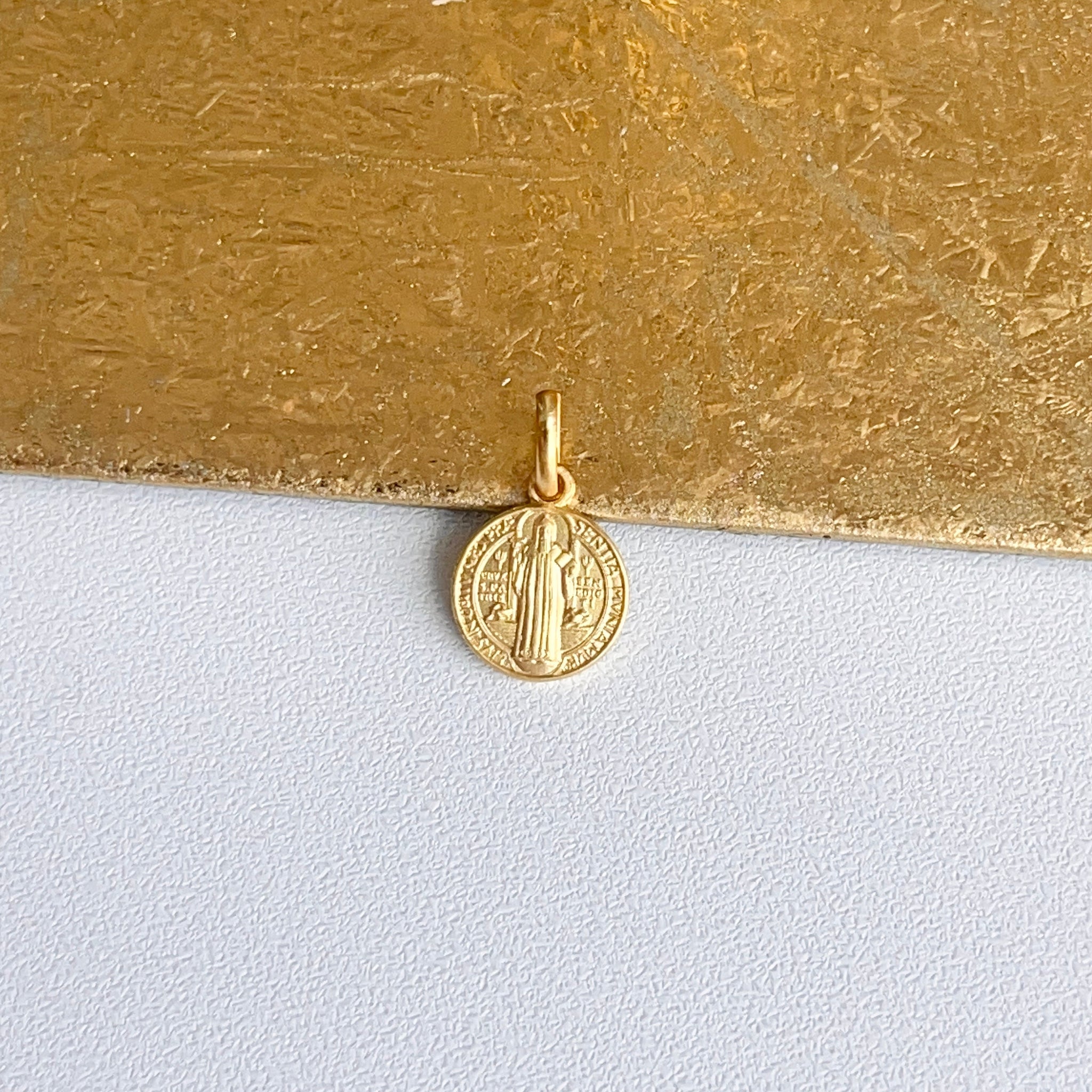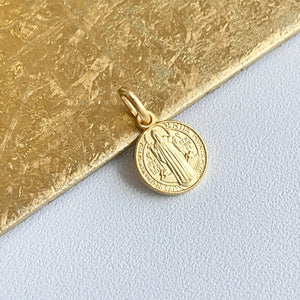 18KT Yellow Gold St Benedict Matte Medal Pendant Charm 10mm