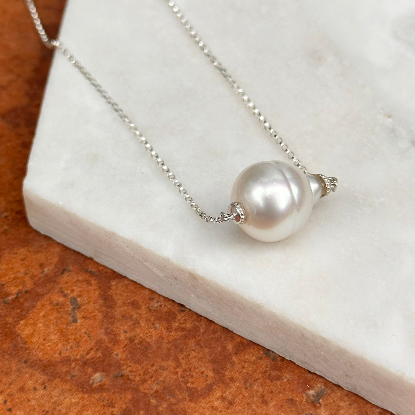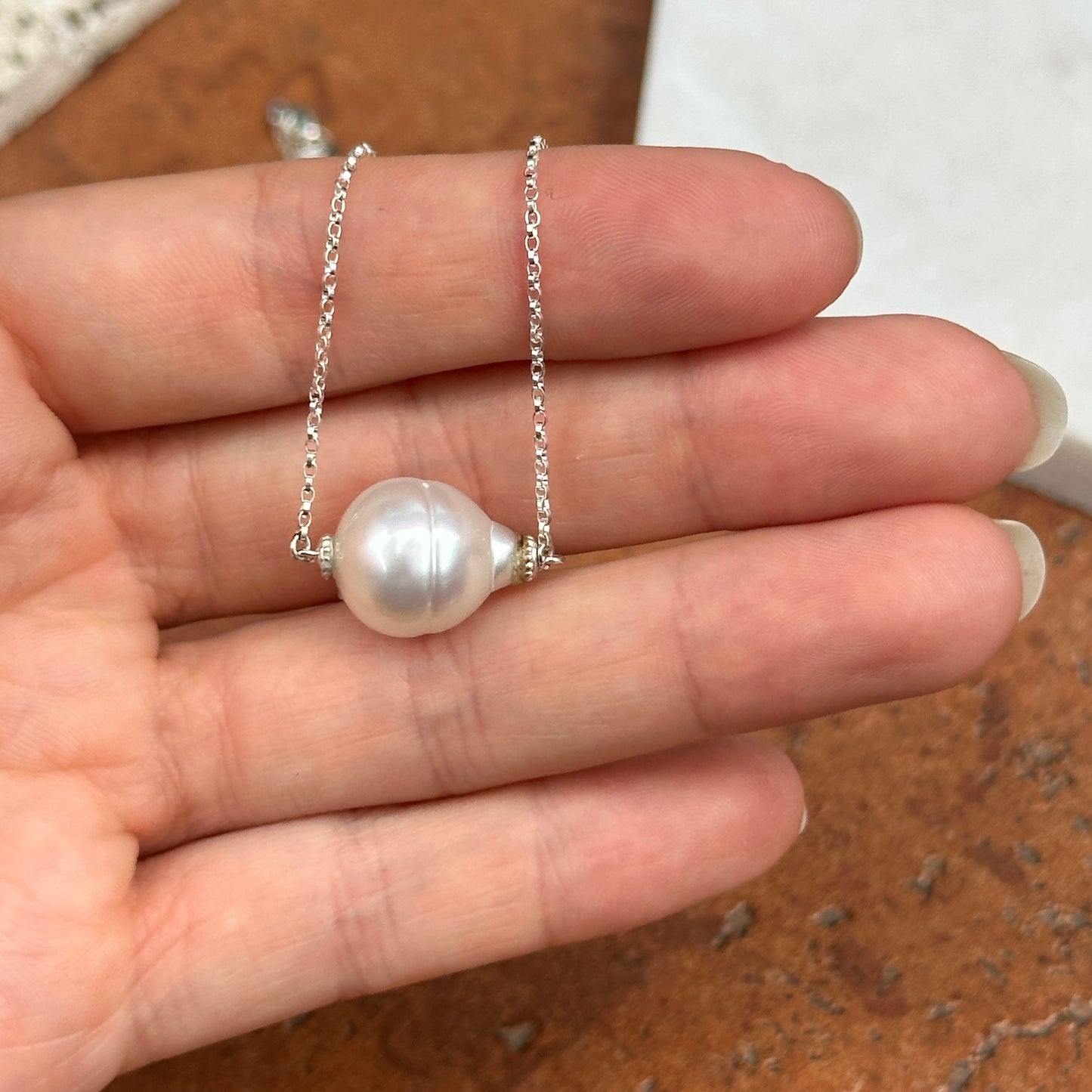 Sterling Silver + Paspaley South Sea Pearl 18” Adjustable Chain Necklace