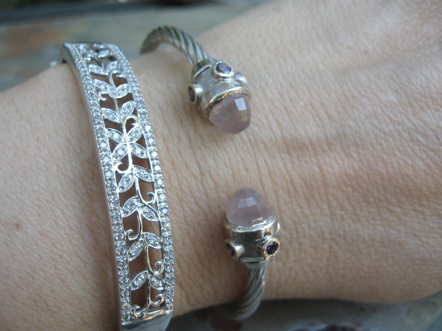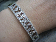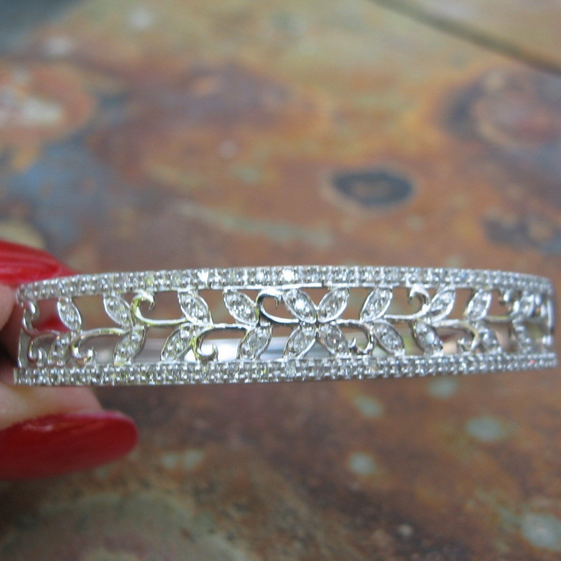 Estate 10KT White Gold + Pave Diamond Filigree Leaves Bangle Bracelet