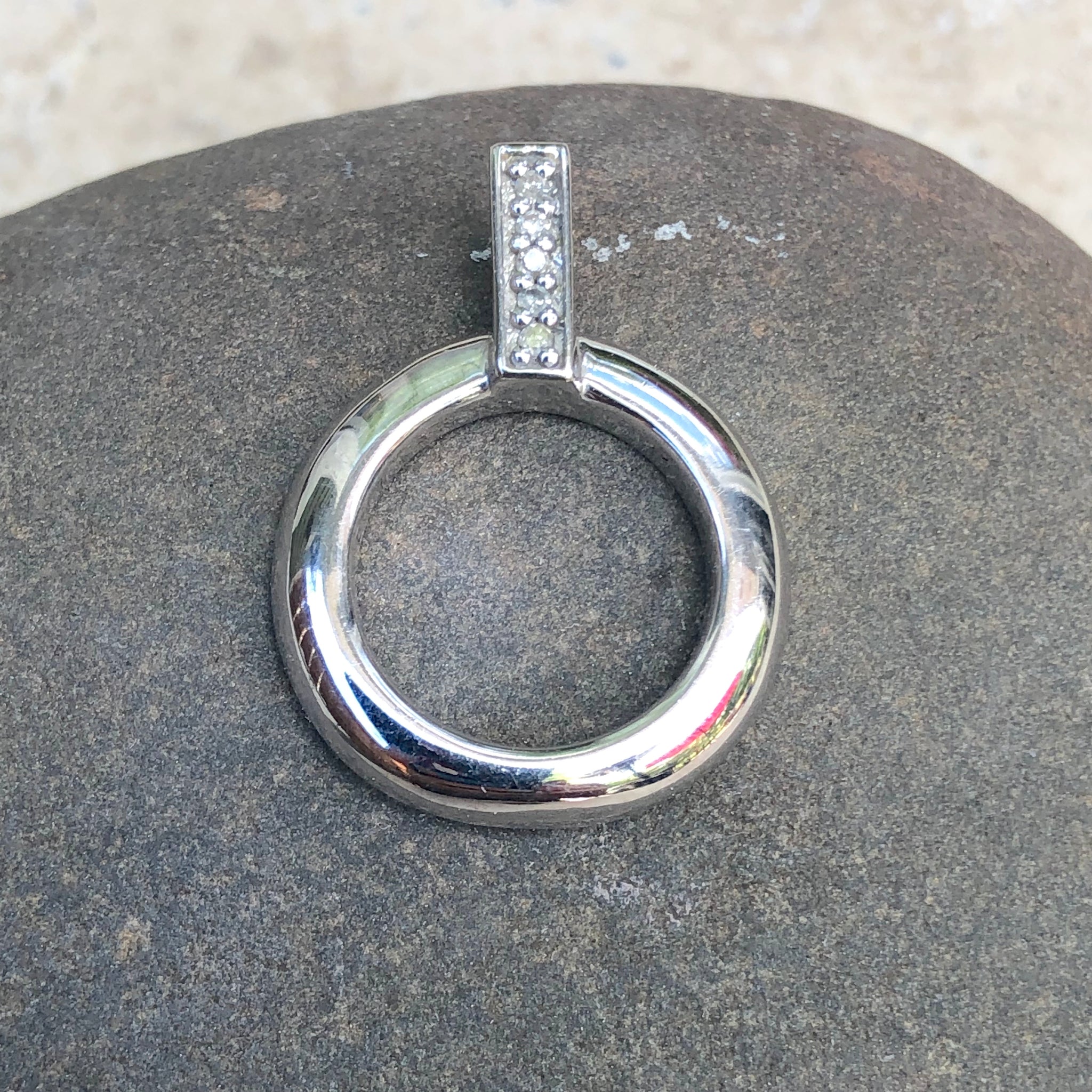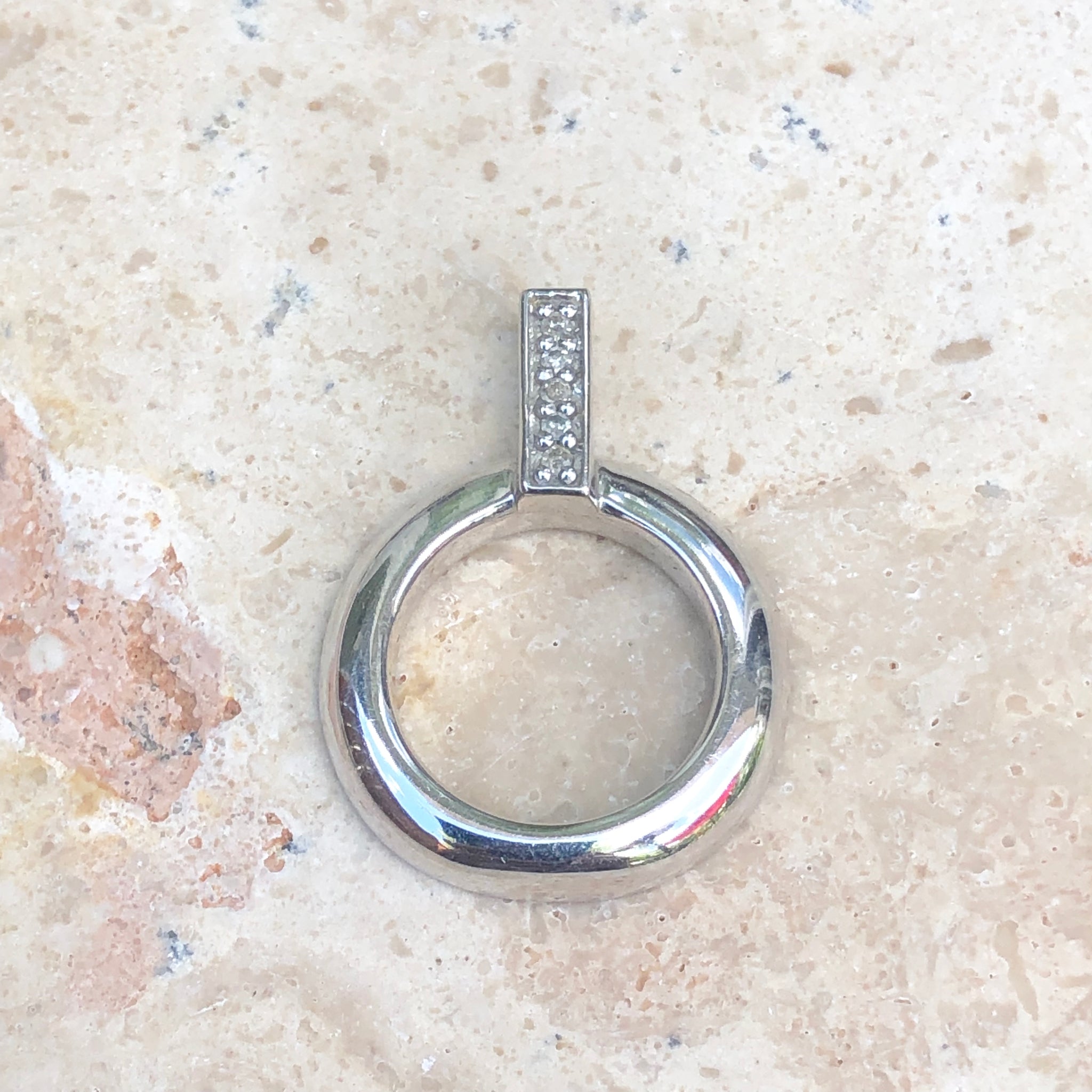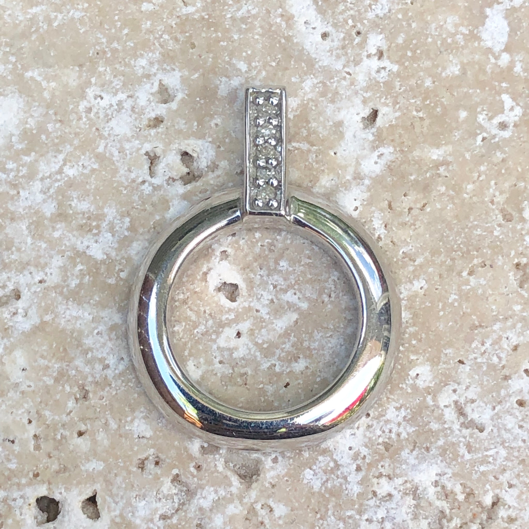 Estate 10KT White Gold + Diamond Circle Slide Pendant