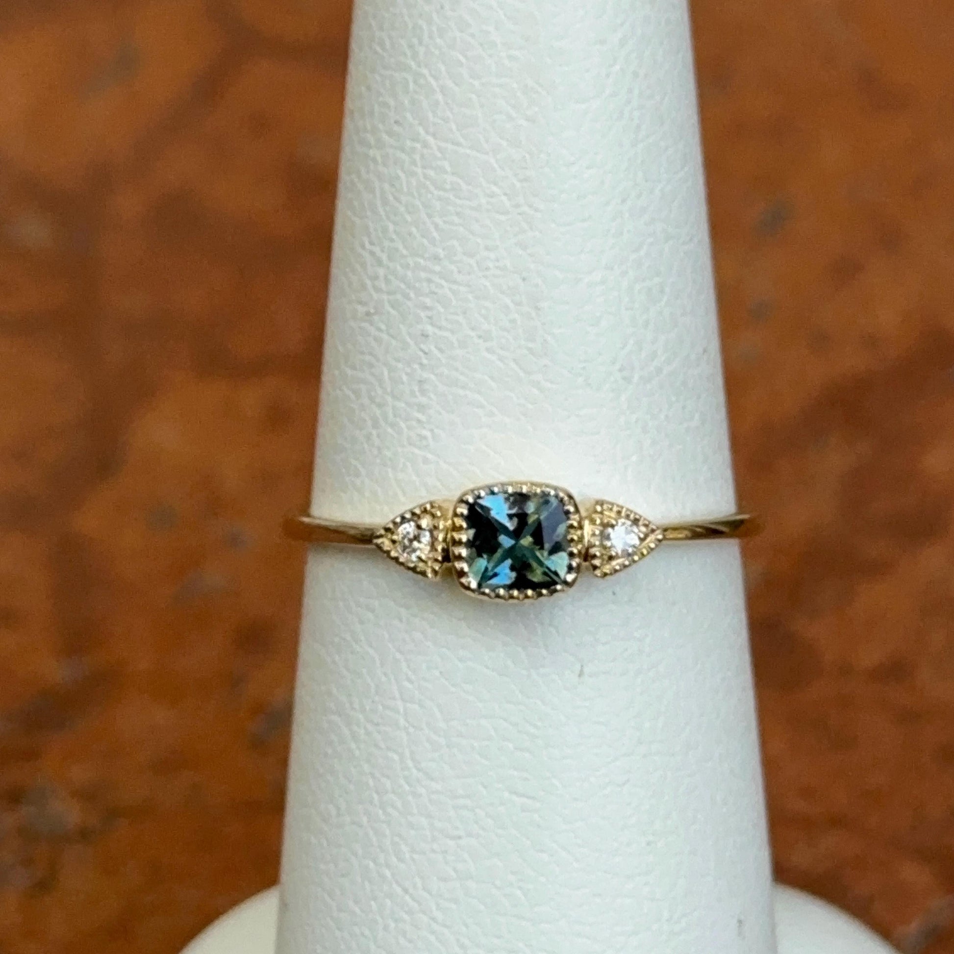Estate 10KT Yellow Gold Cushion-Cut London Blue Topaz + Diamond Accent Ring Size 6.5