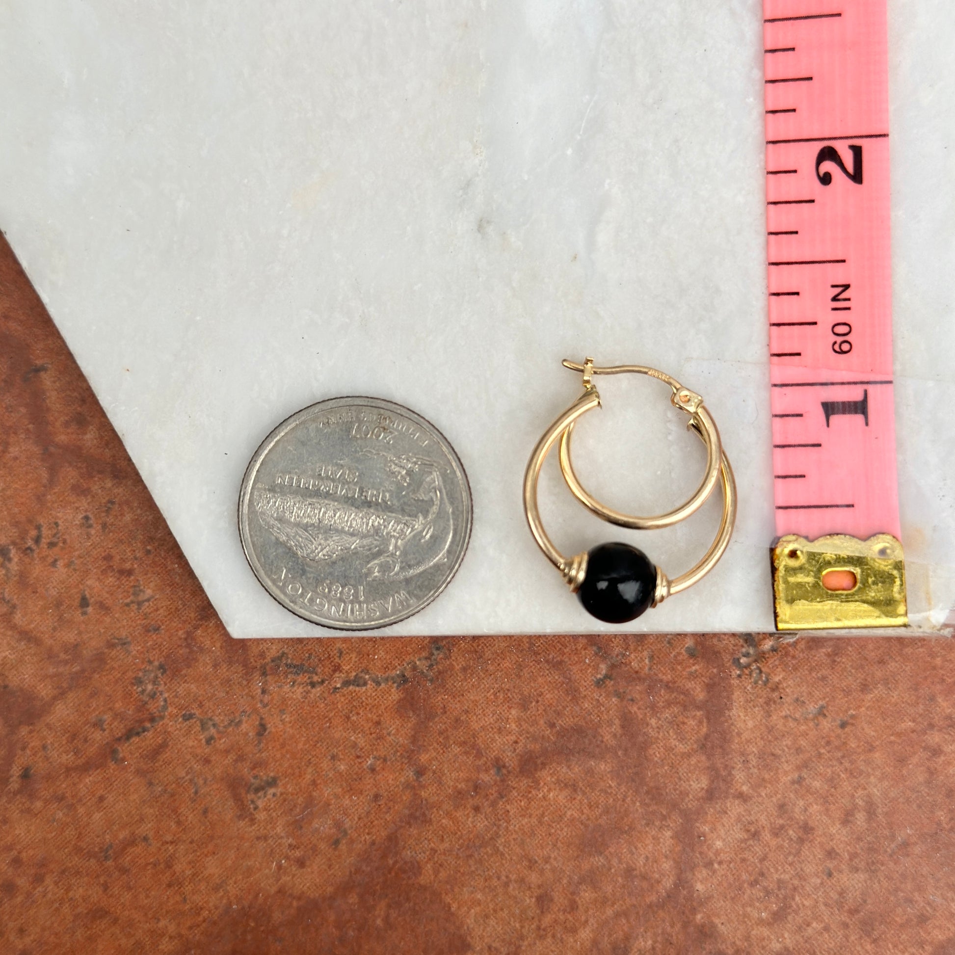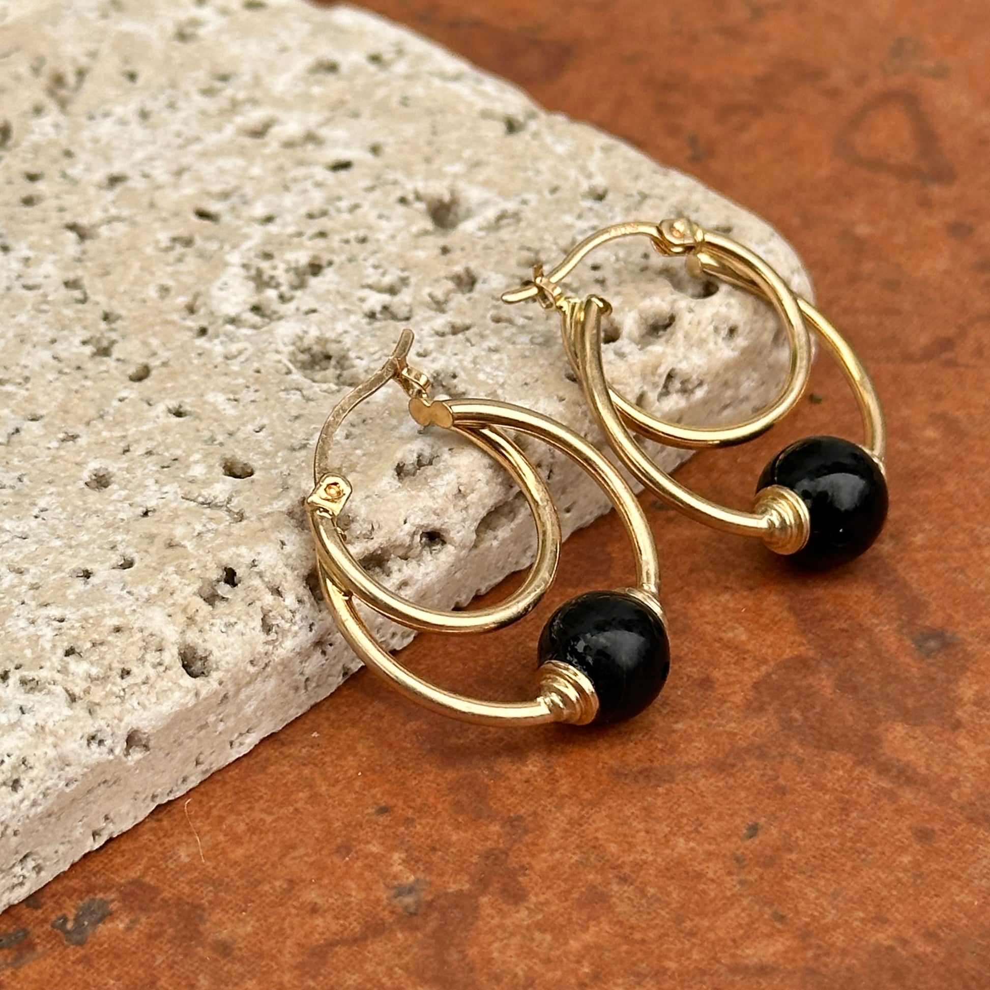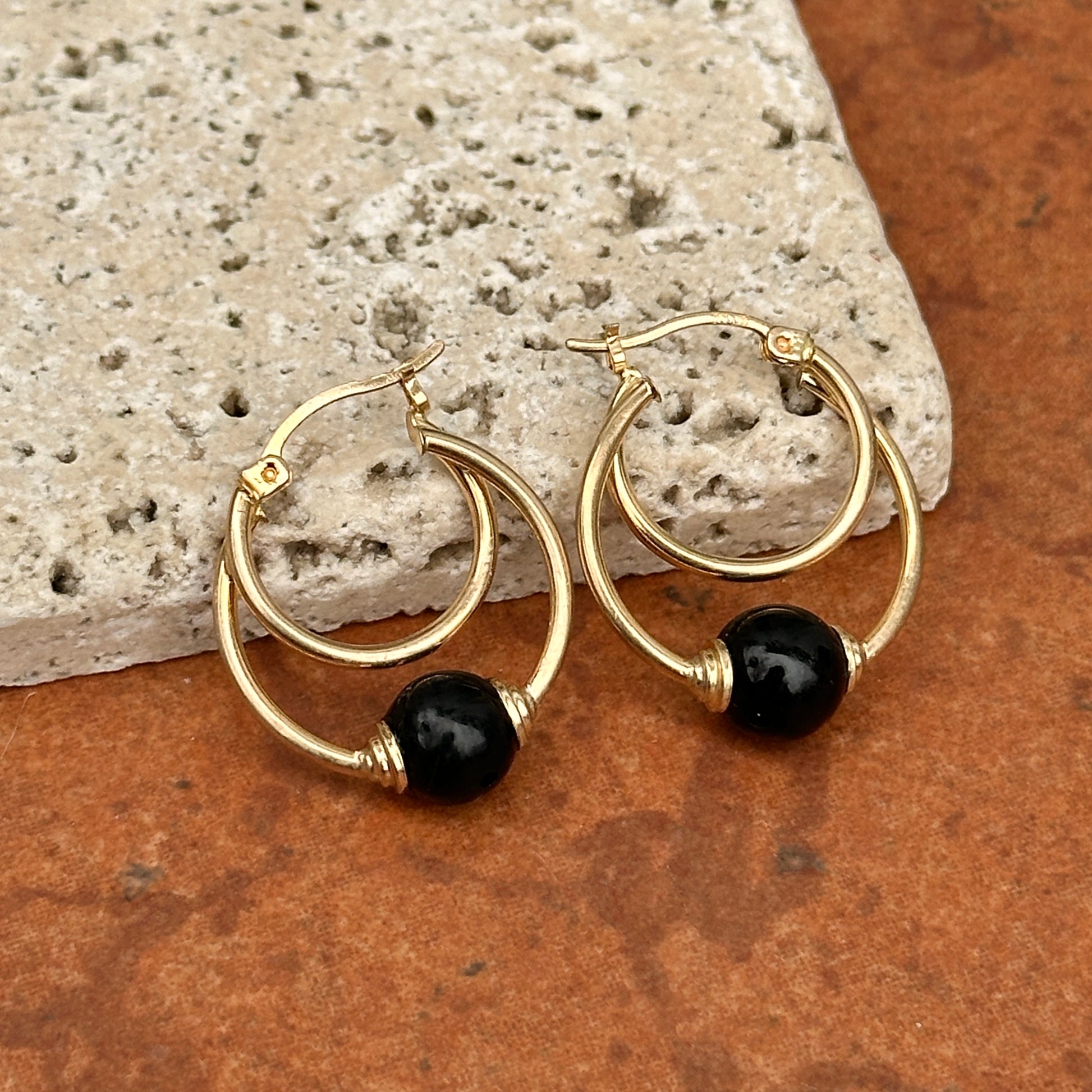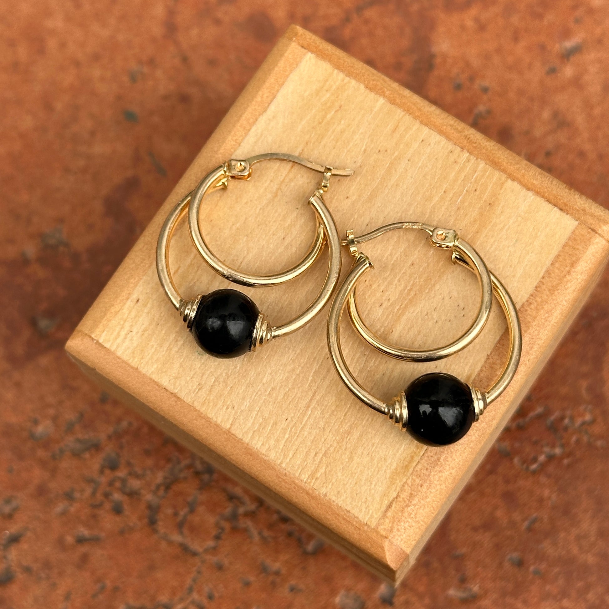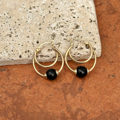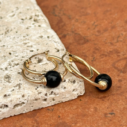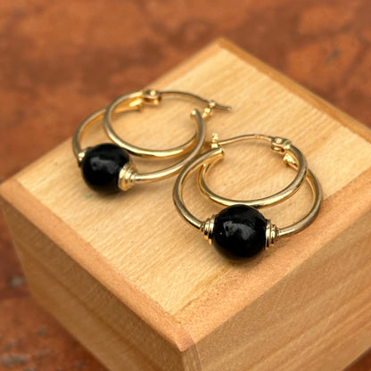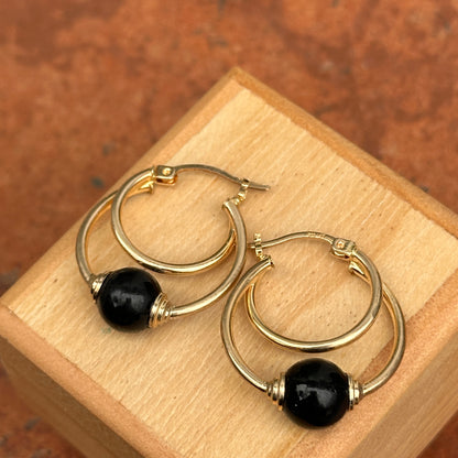 Estate 10KT Yellow Gold Onyx Ball Hoop Earrings